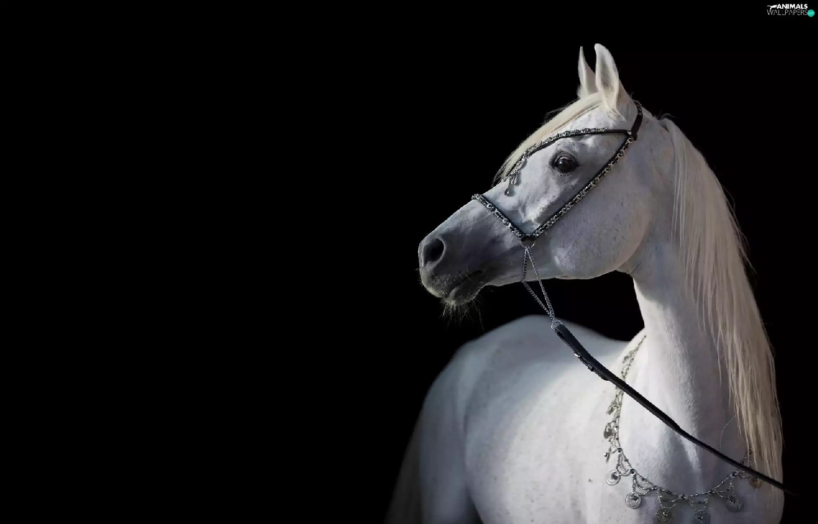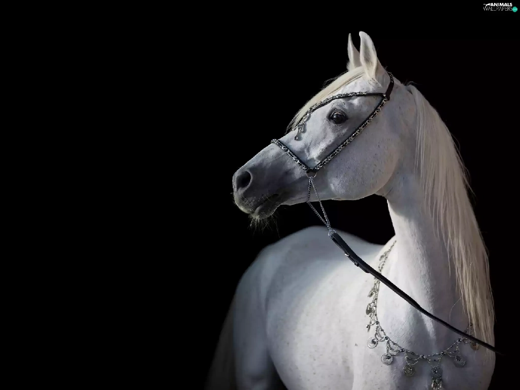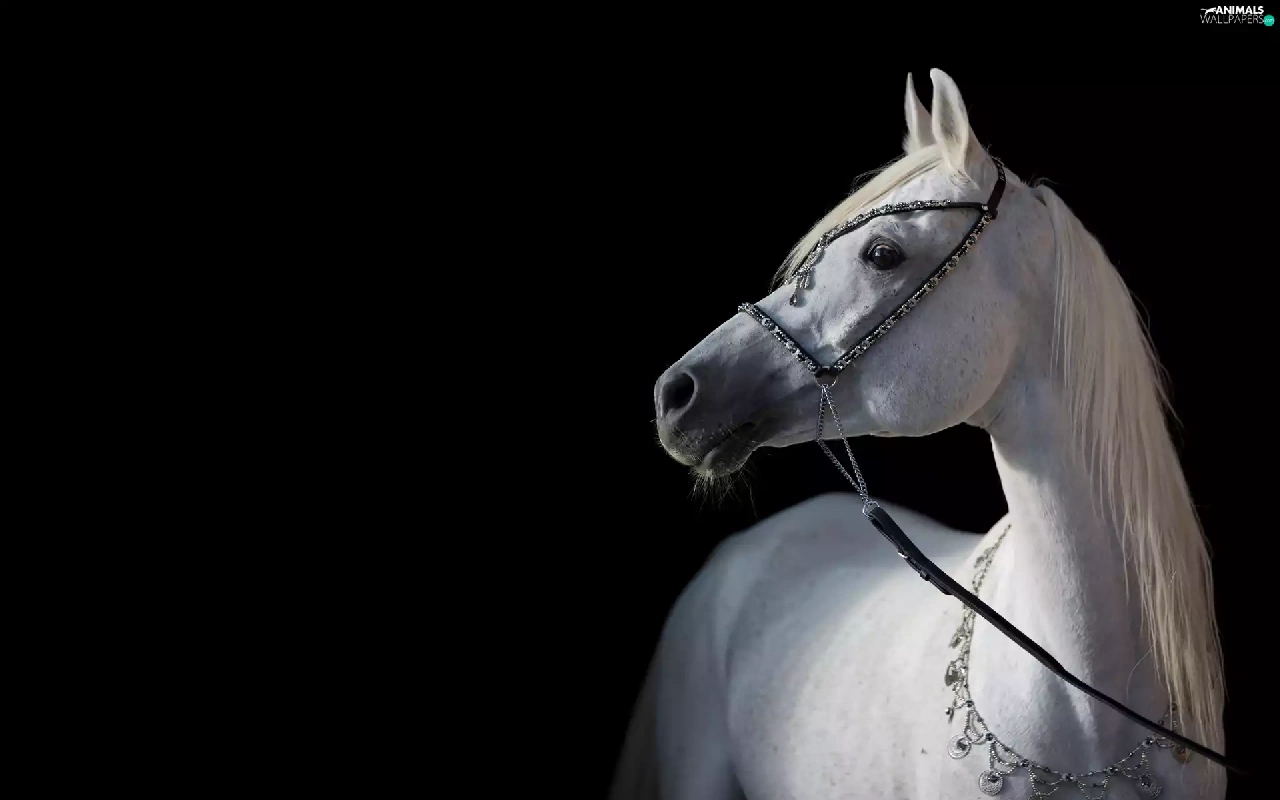 Black, background, Horse, bridle, White