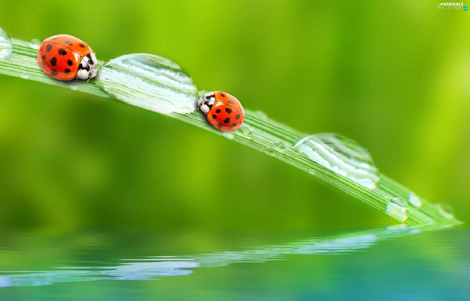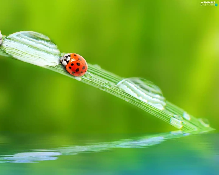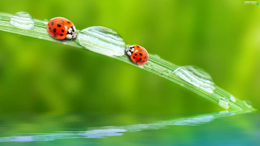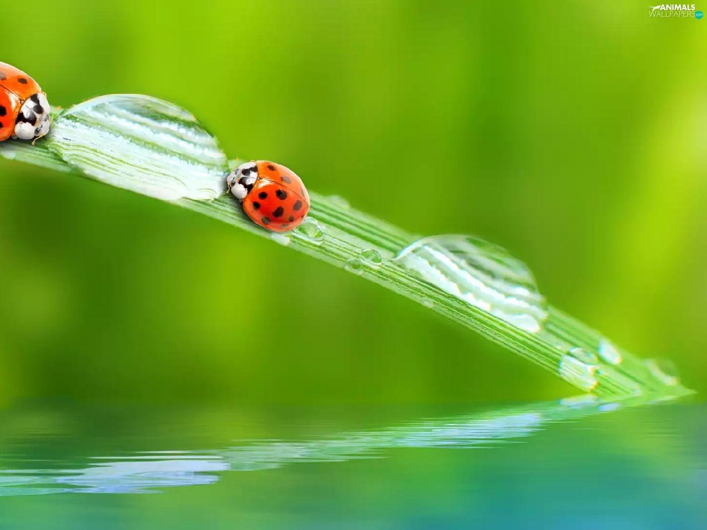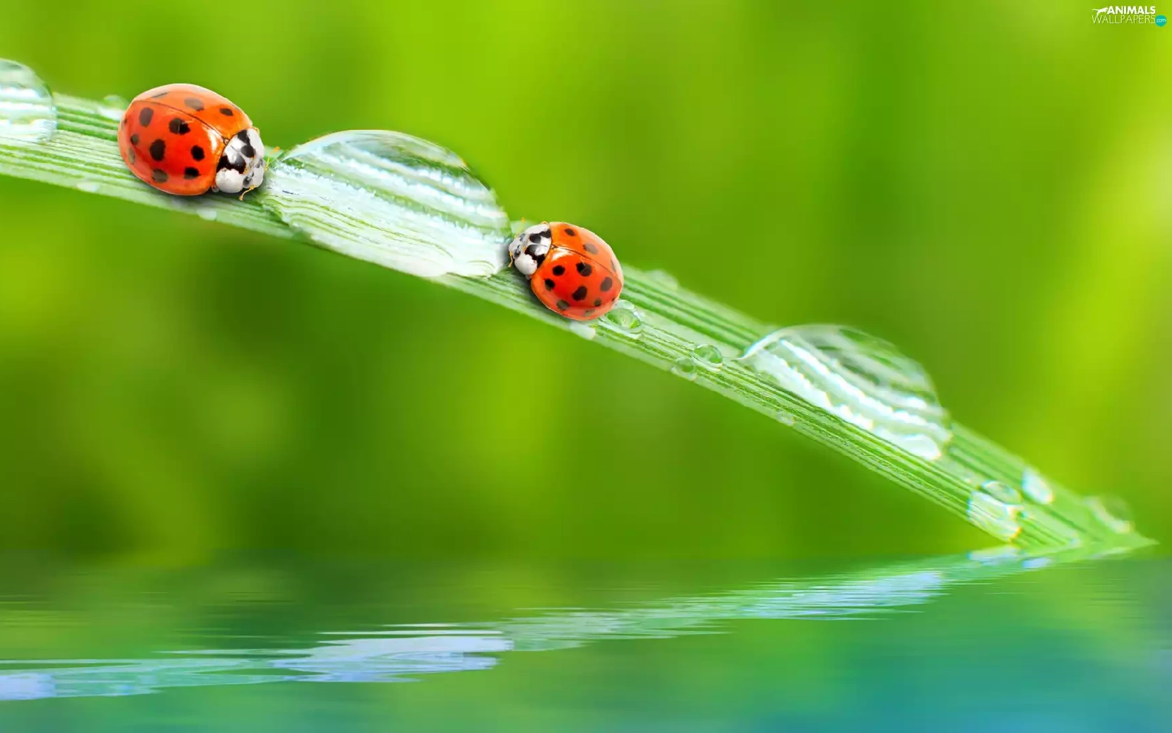 fuzzy, background, ladybugs, drops, Two