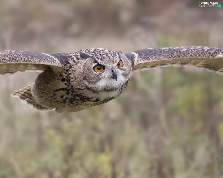 owl, flight, blurry background, eagle-owl