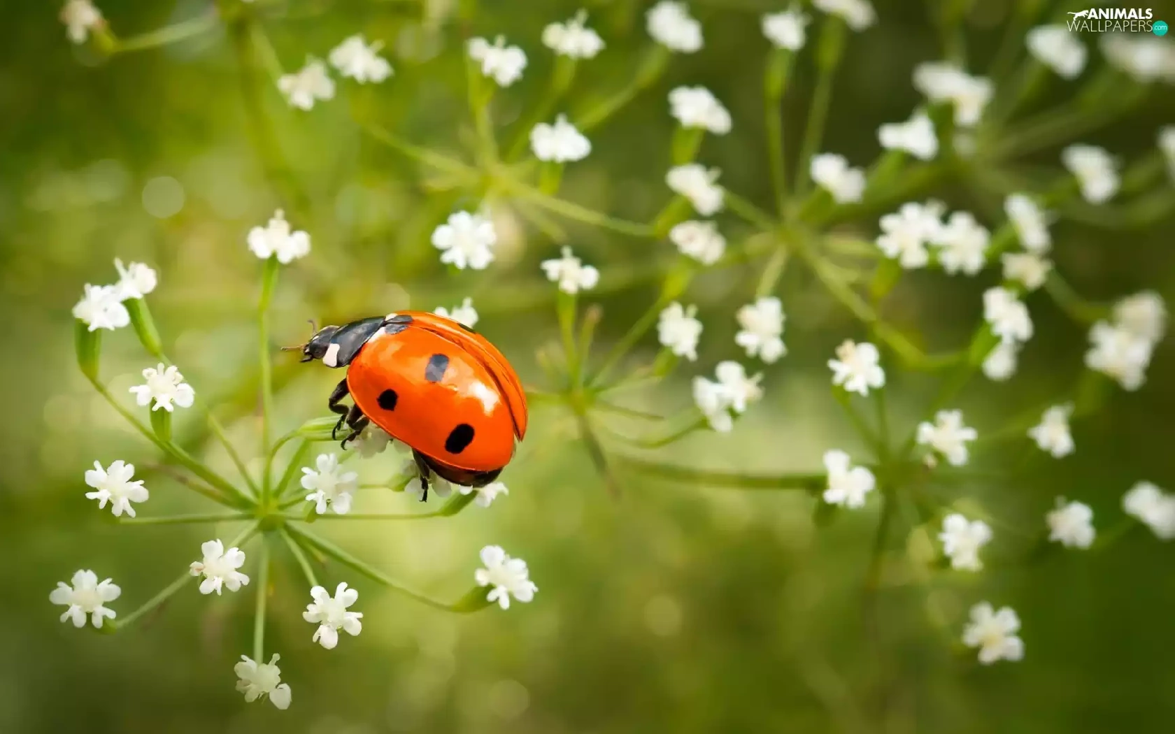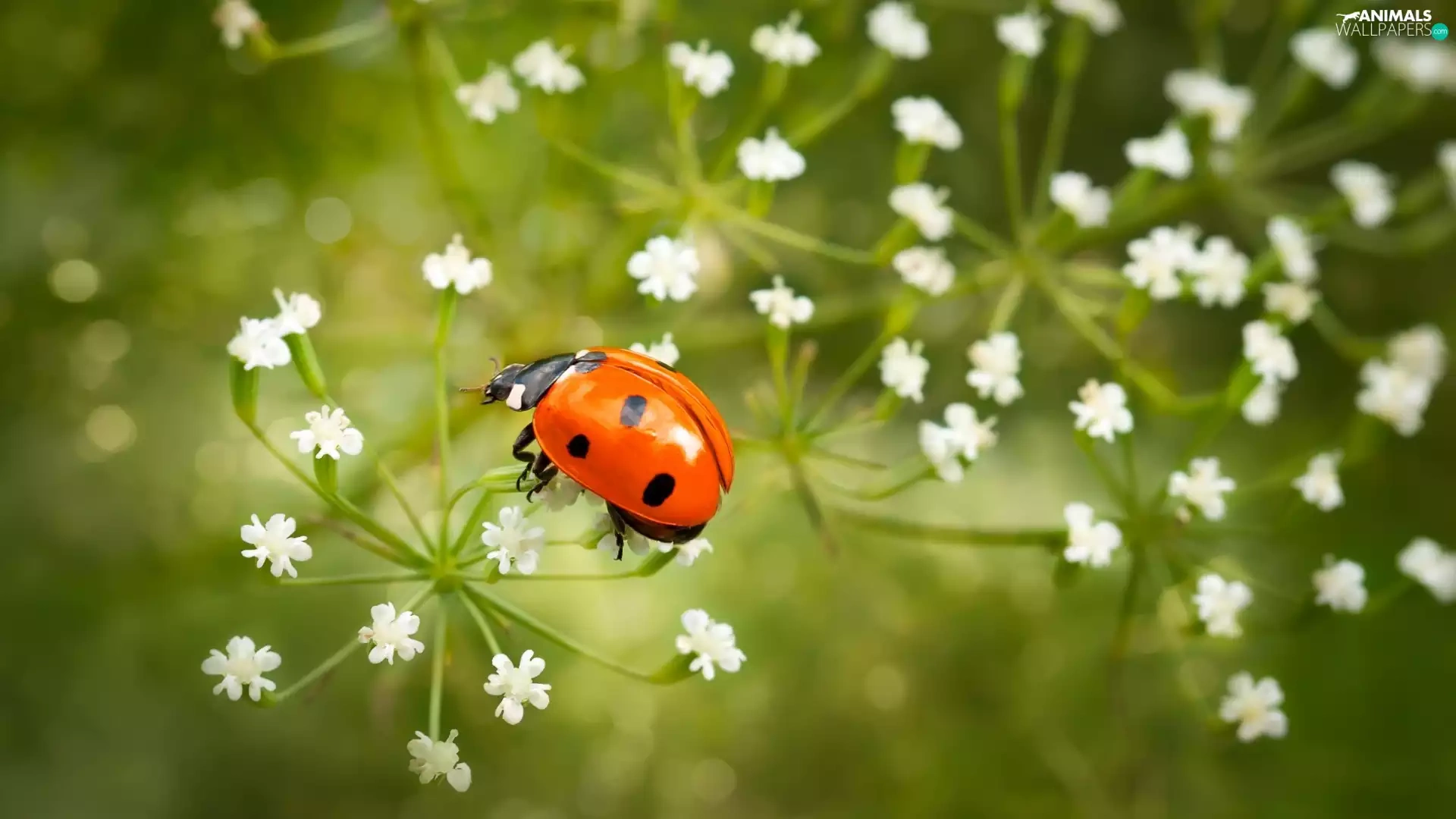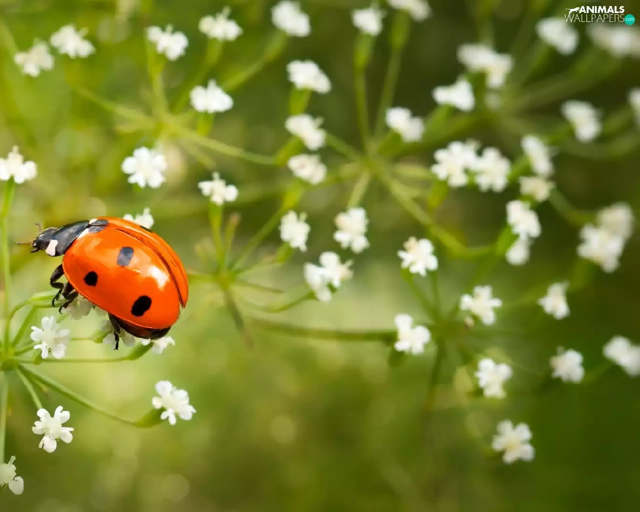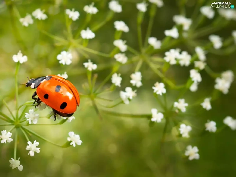 fuzzy, background, White, Flowers, ladybird