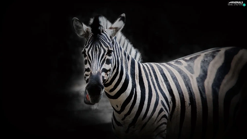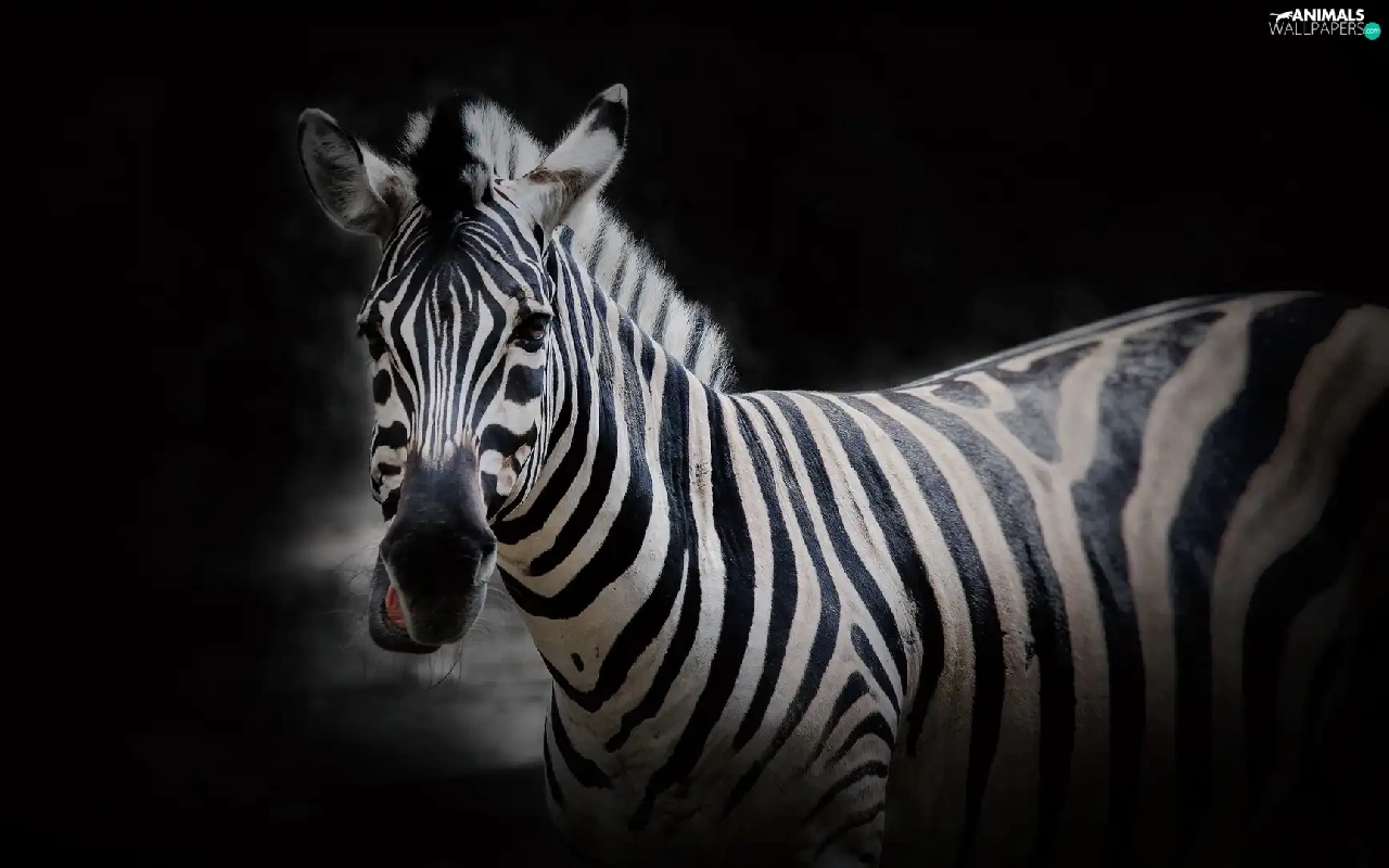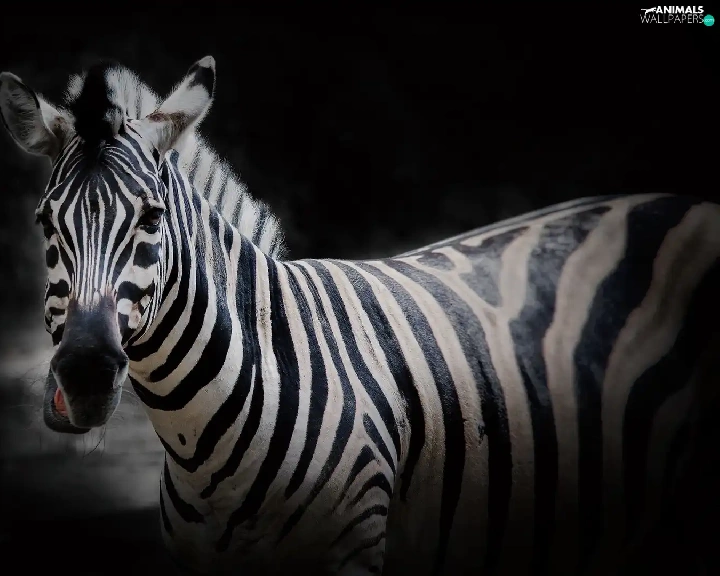 Zebra, Black, background, Head