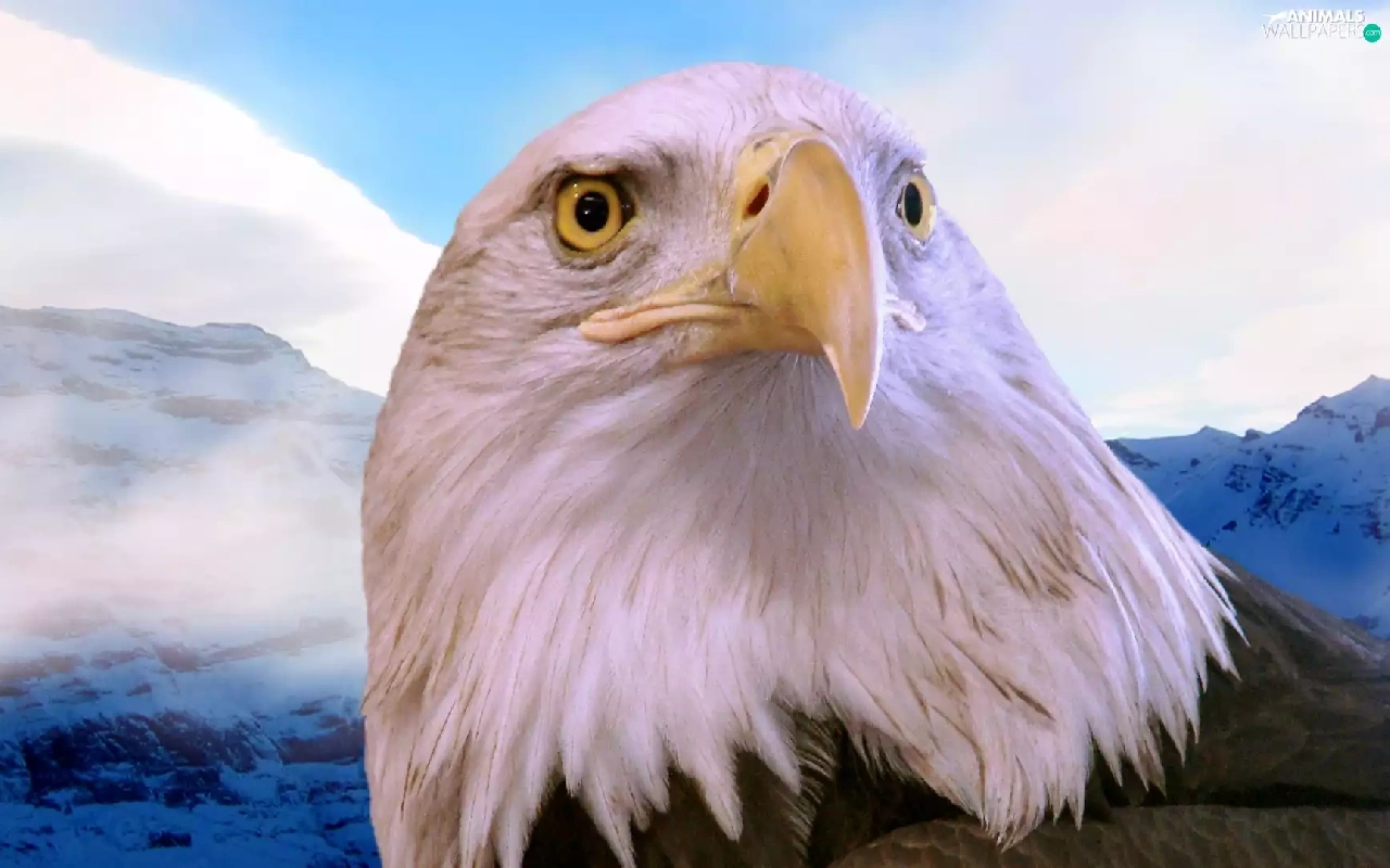 American Bald Eagle, Mountains, Sky