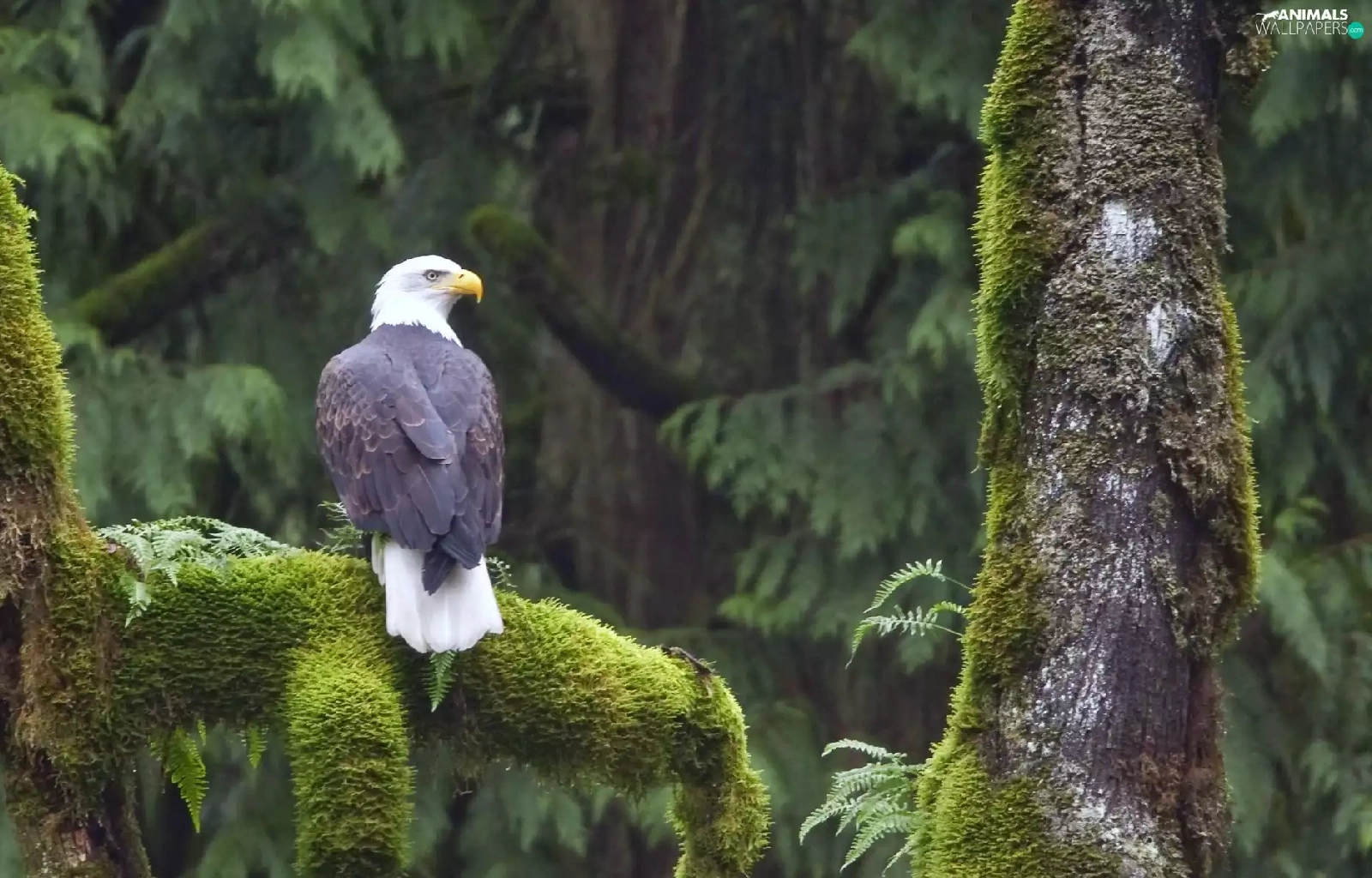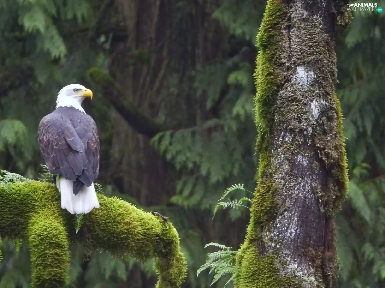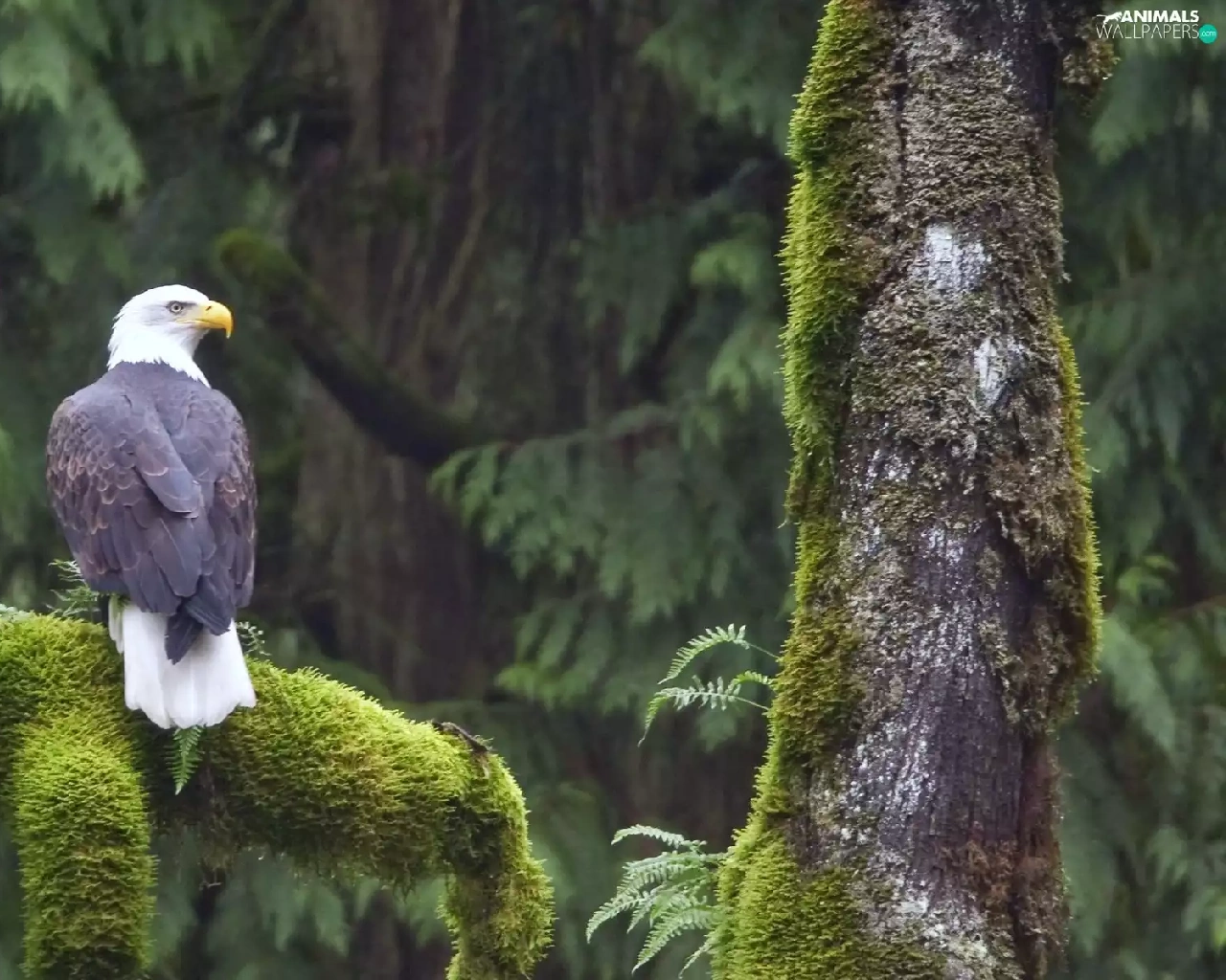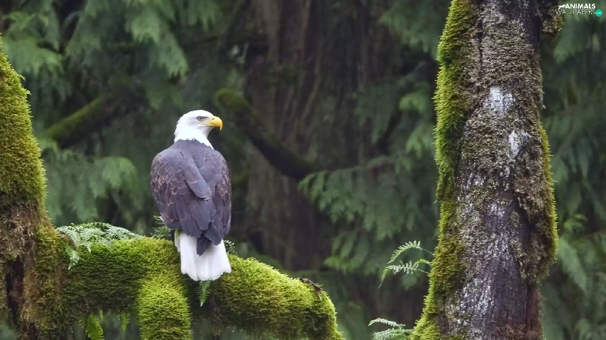 trees, mosses, American Bald Eagle, viewes