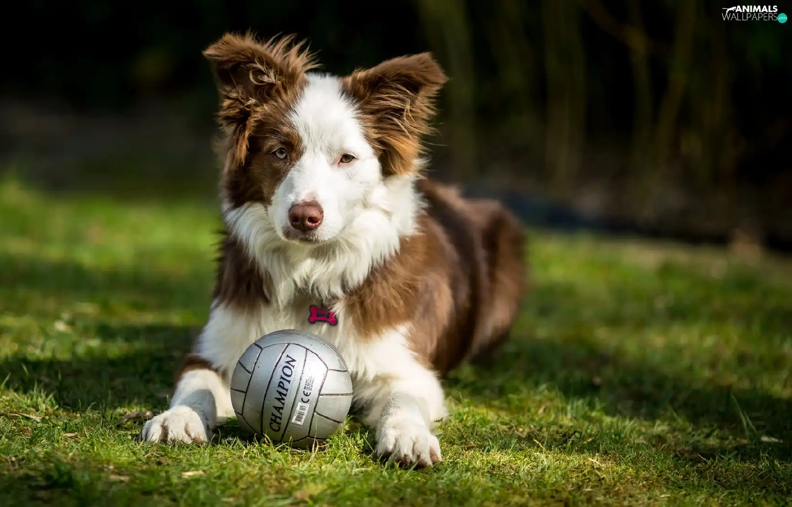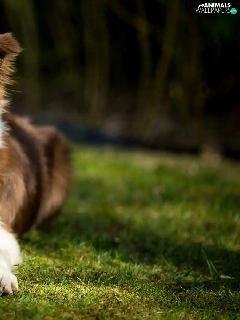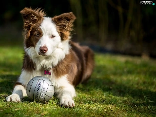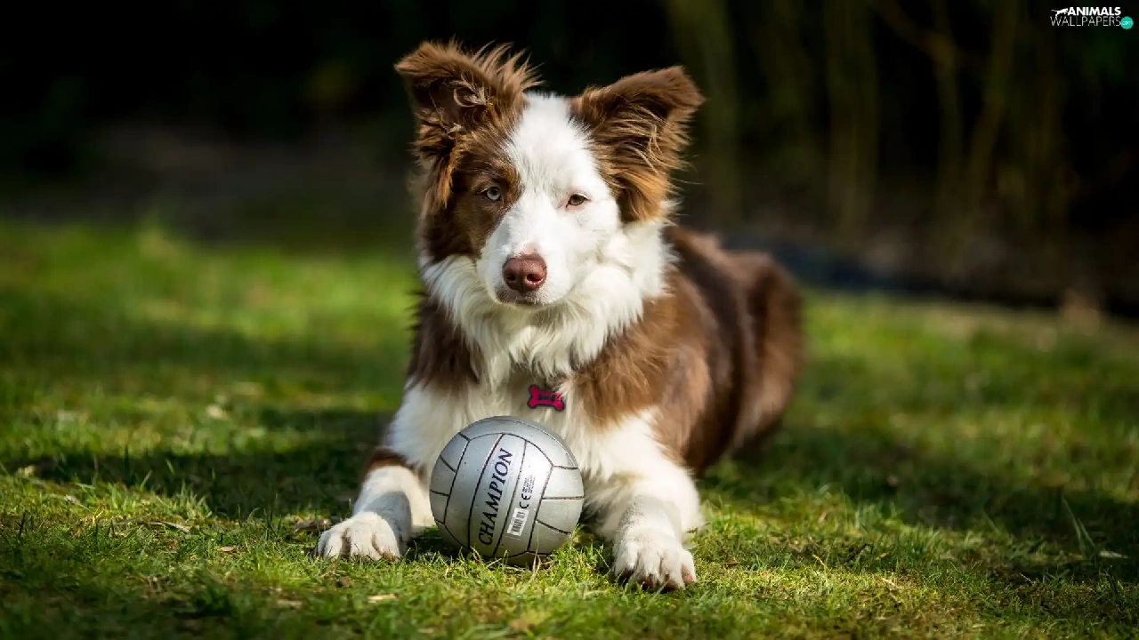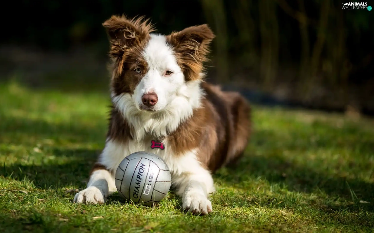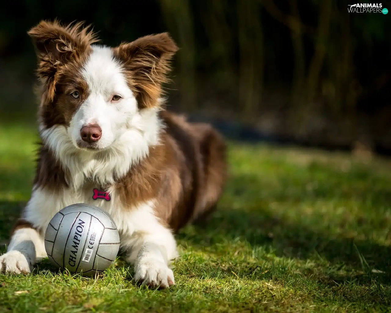 dog, Ball, grass, Border Collie