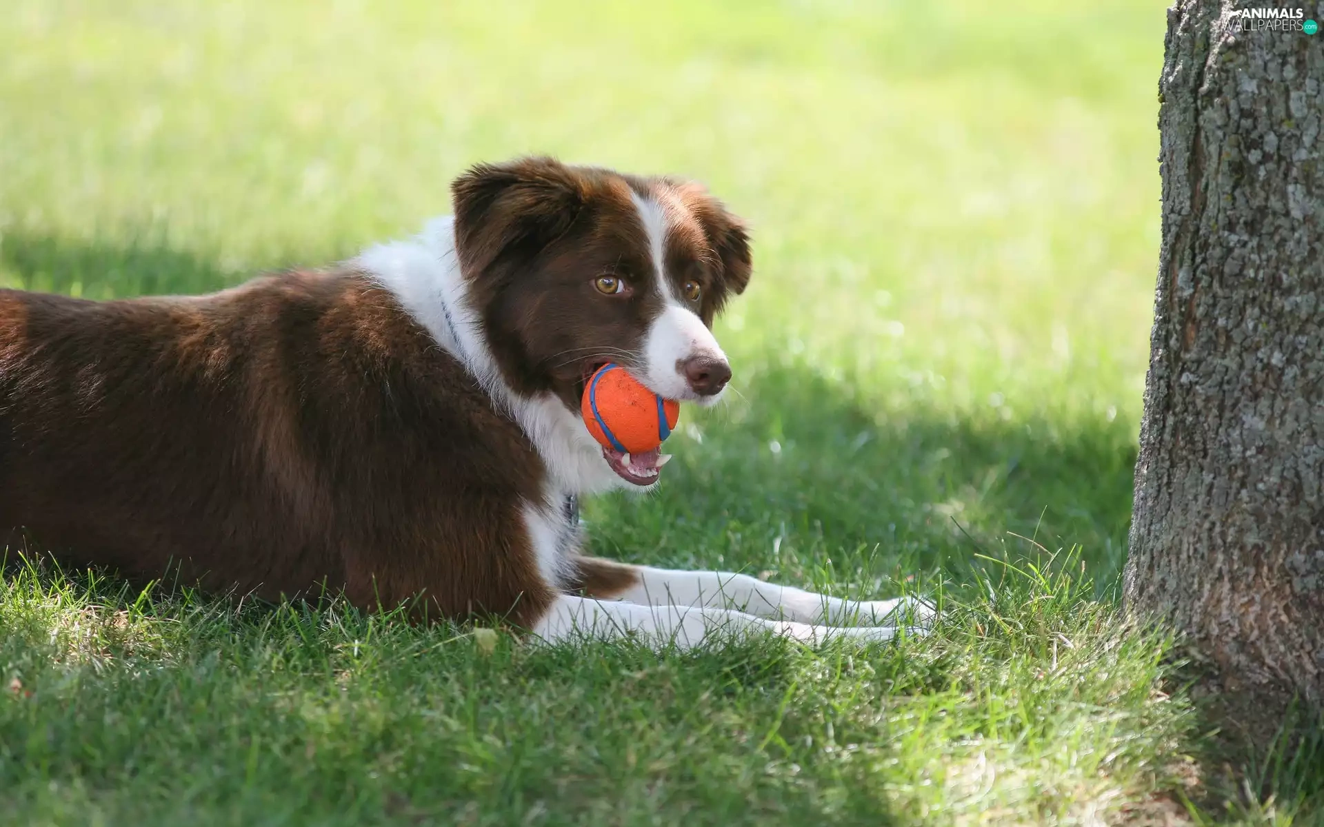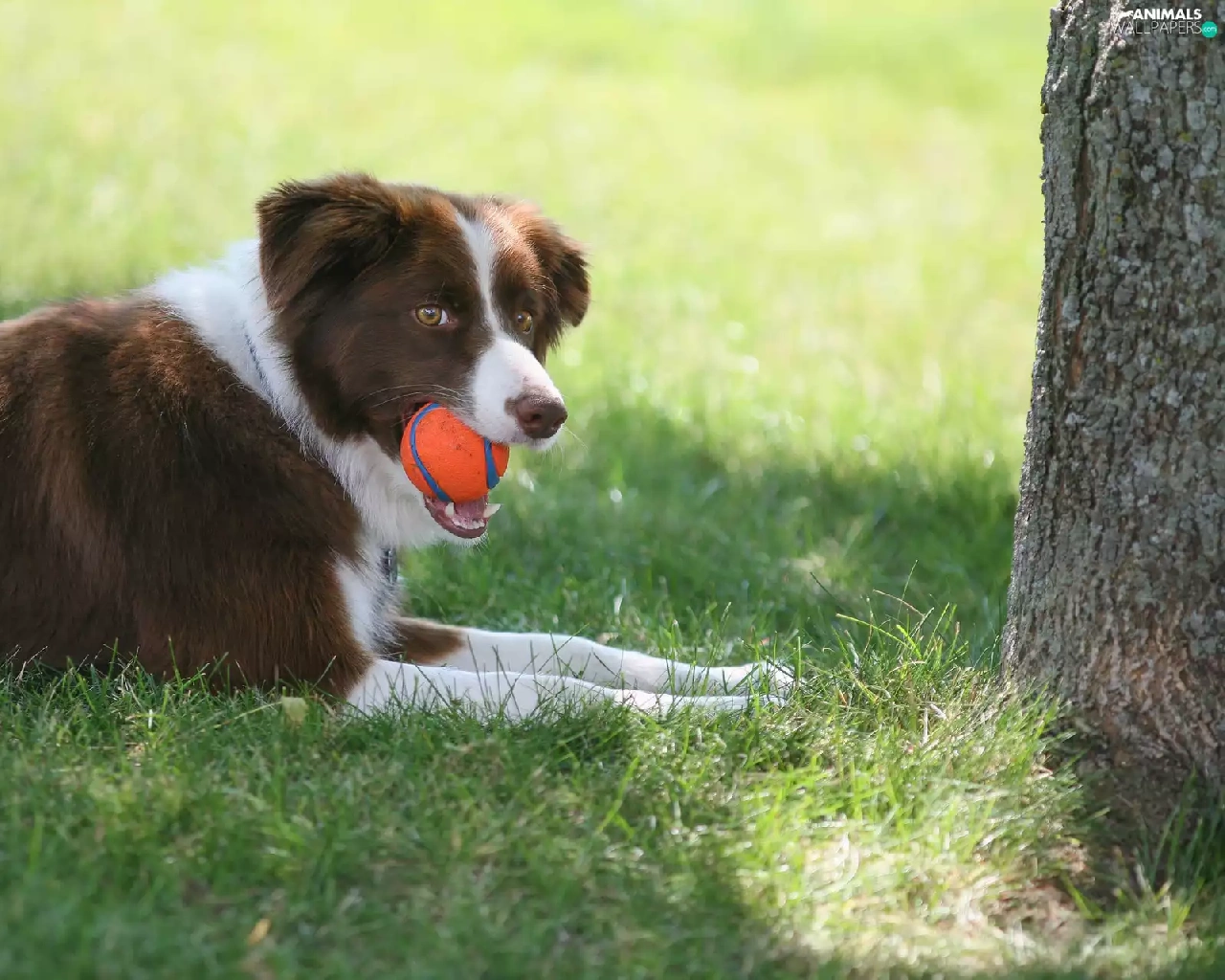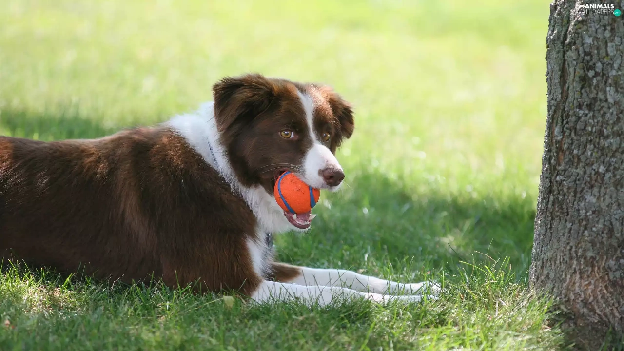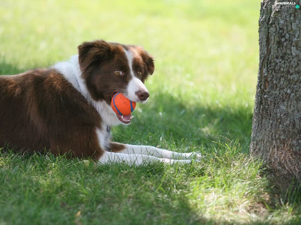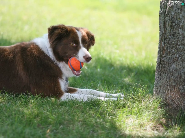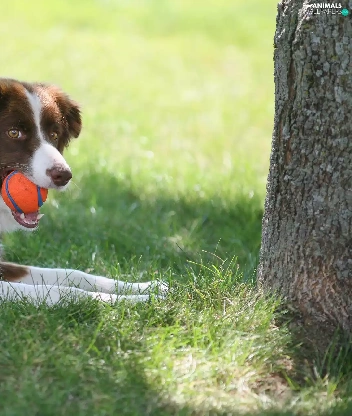 grass, trees, the ball, Meadow, Border Collie