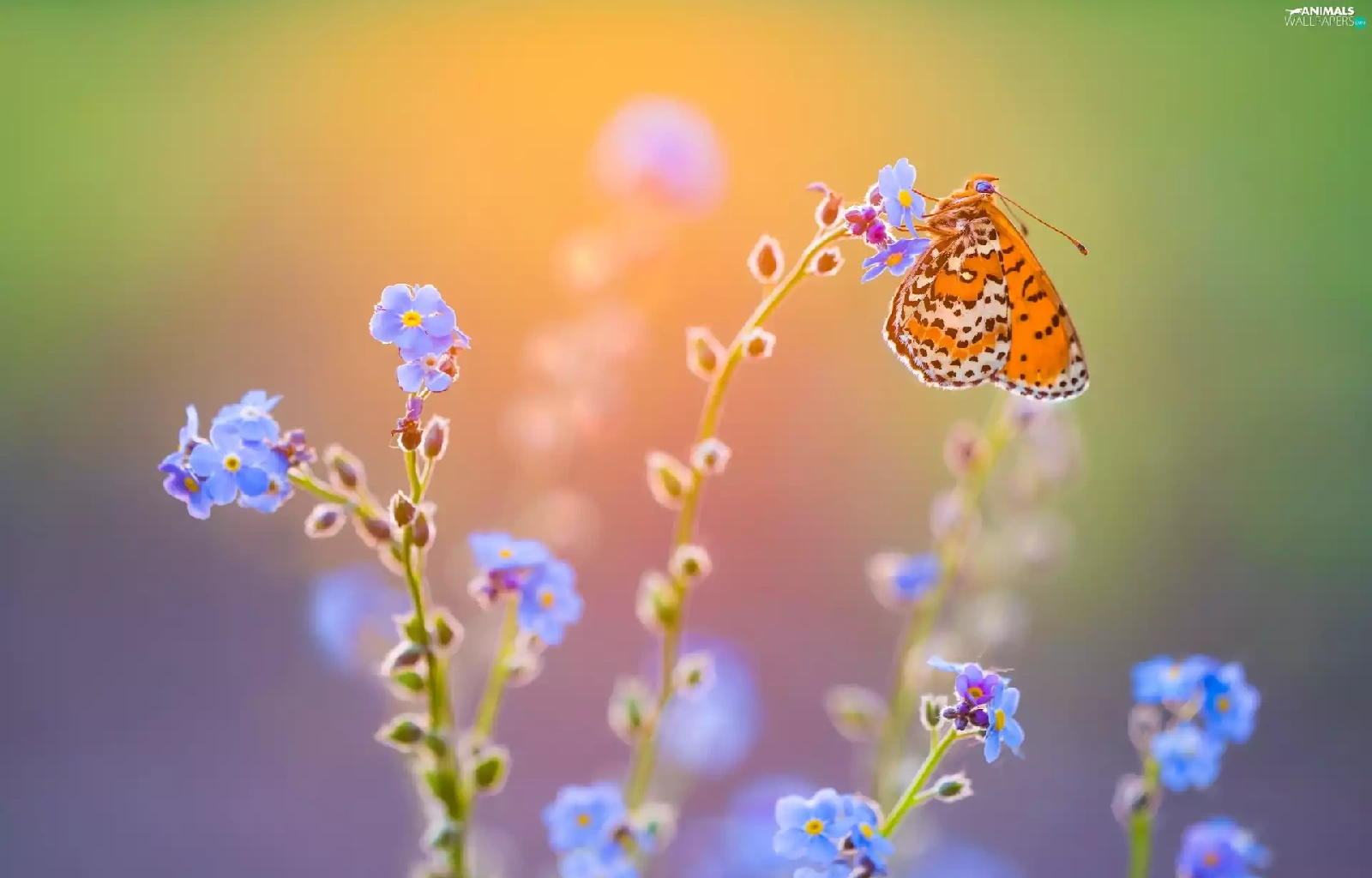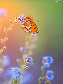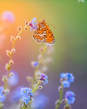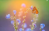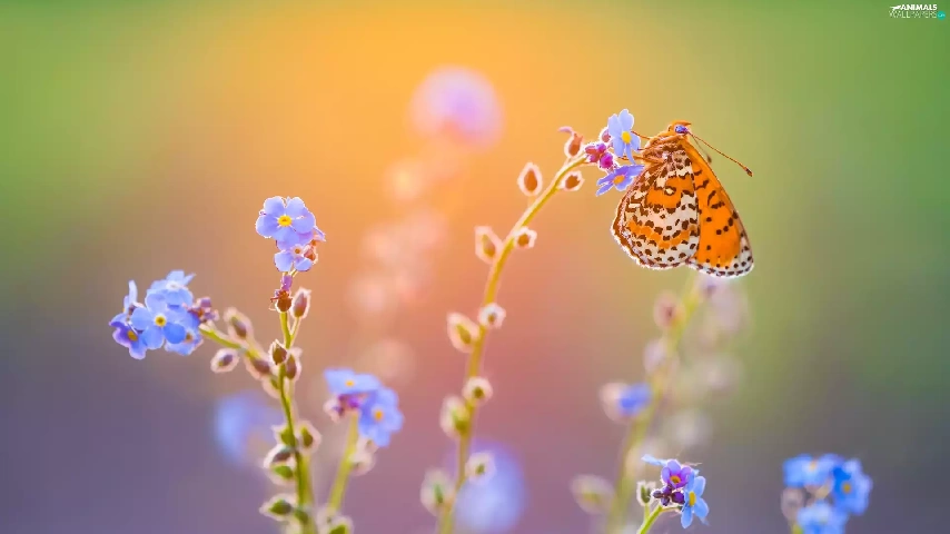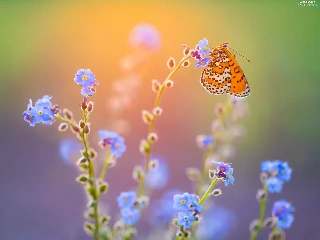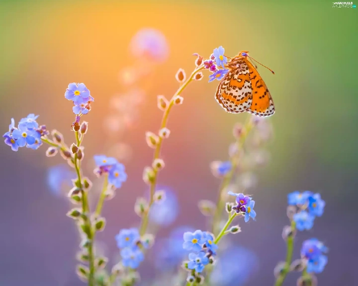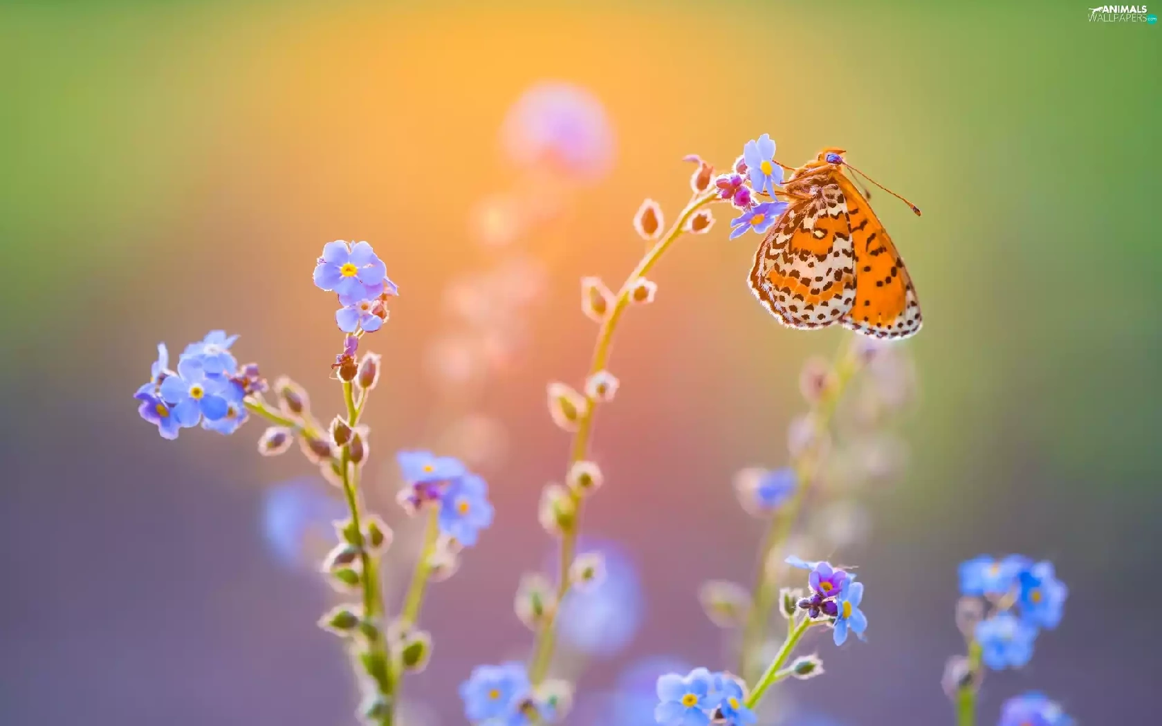 Flowers, butterfly, Red-Band Fritillary, Forget