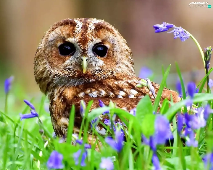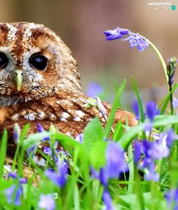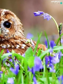owl, purple, Flowers, Barn
