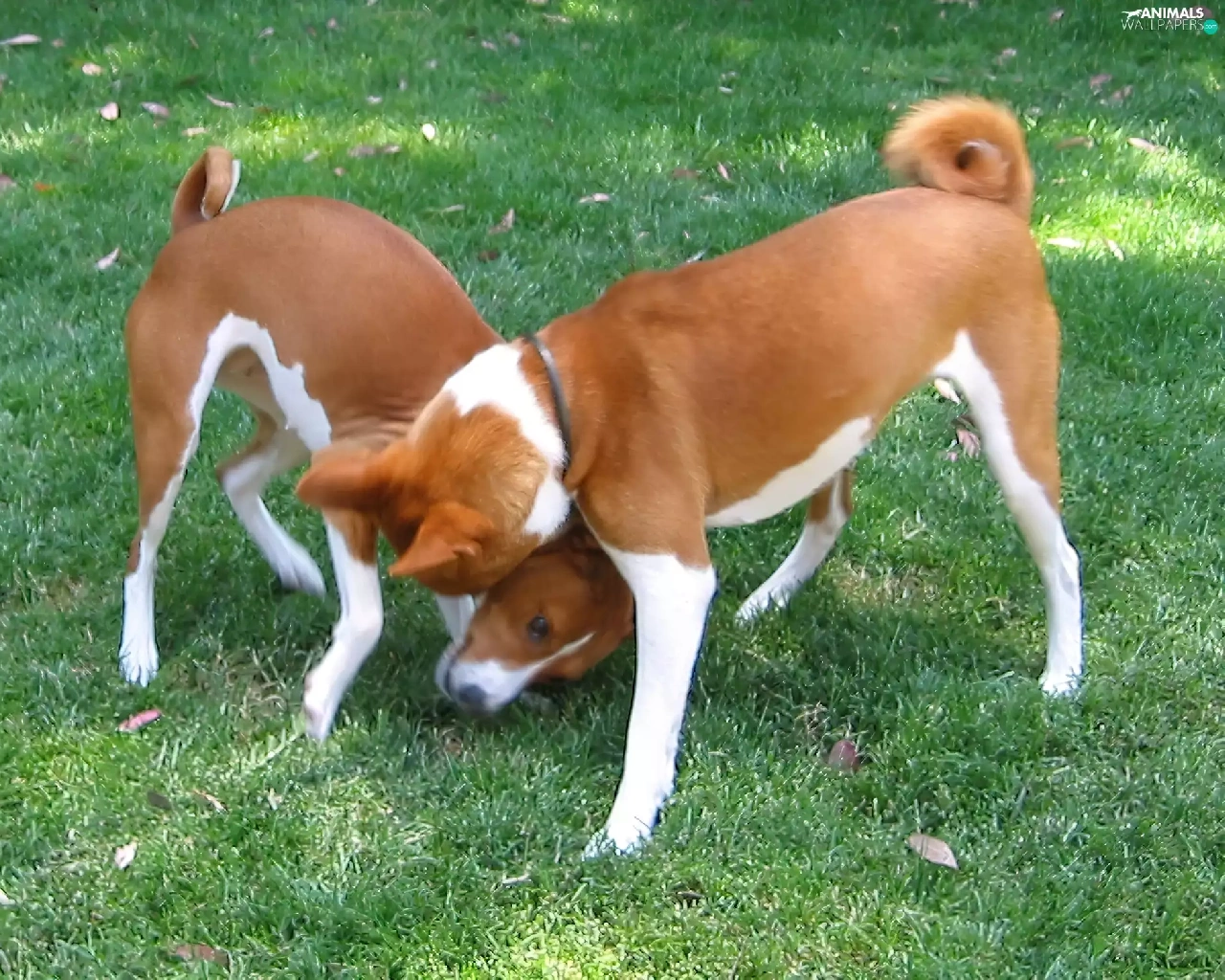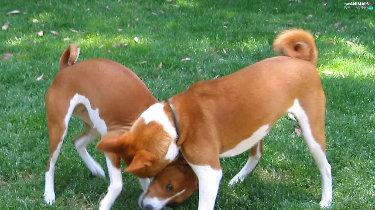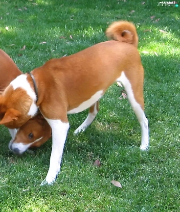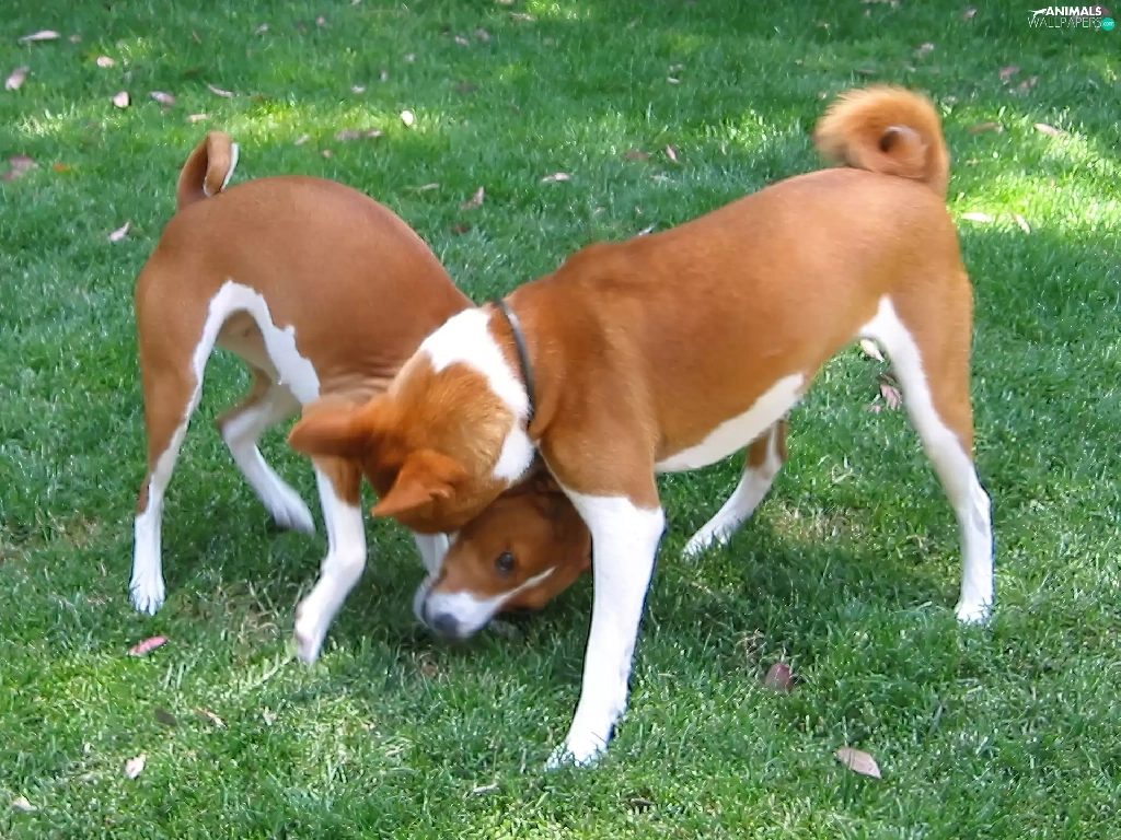 grass, Two cars, Basenji