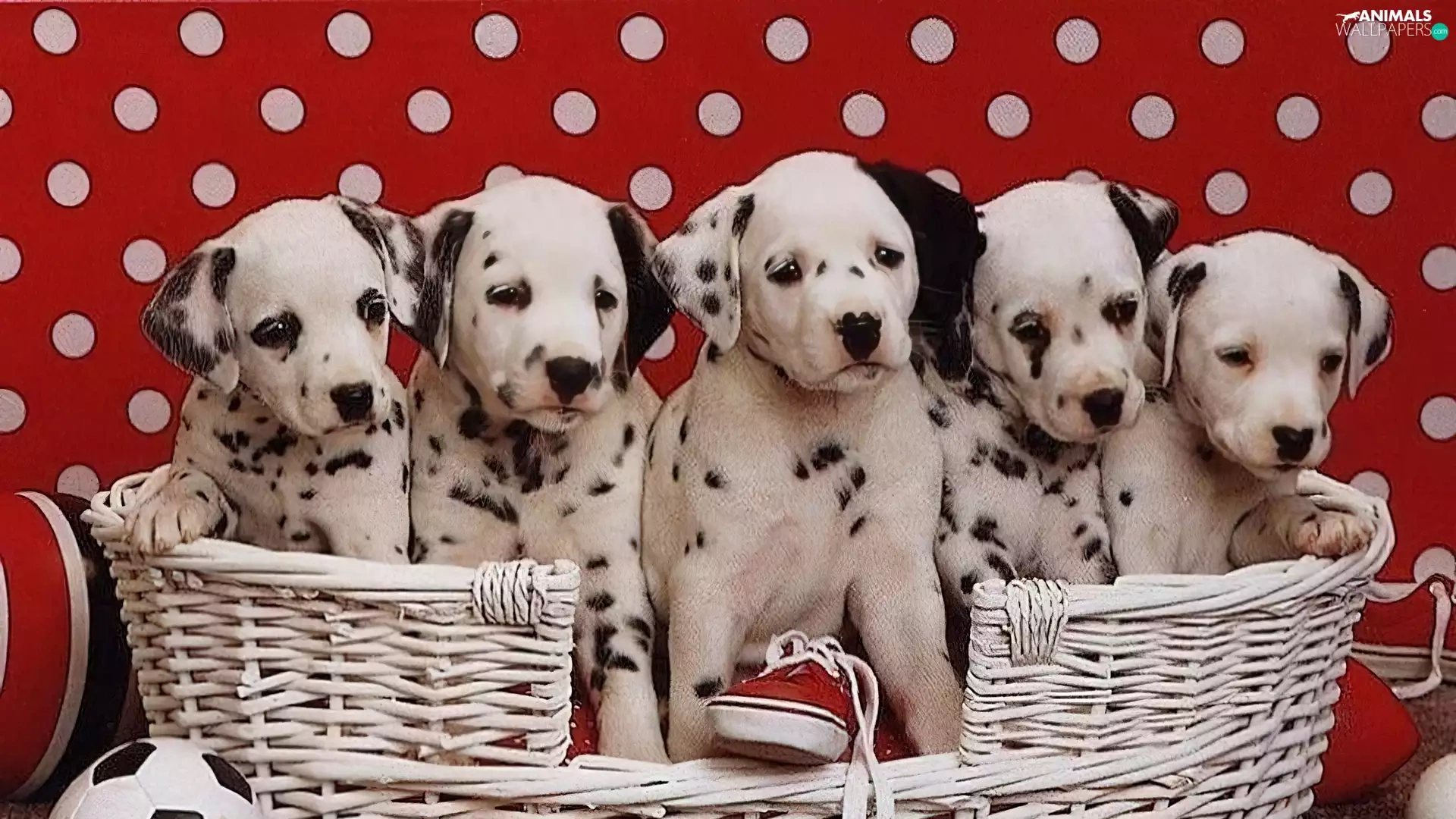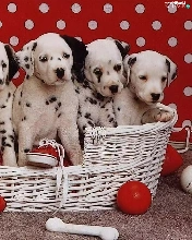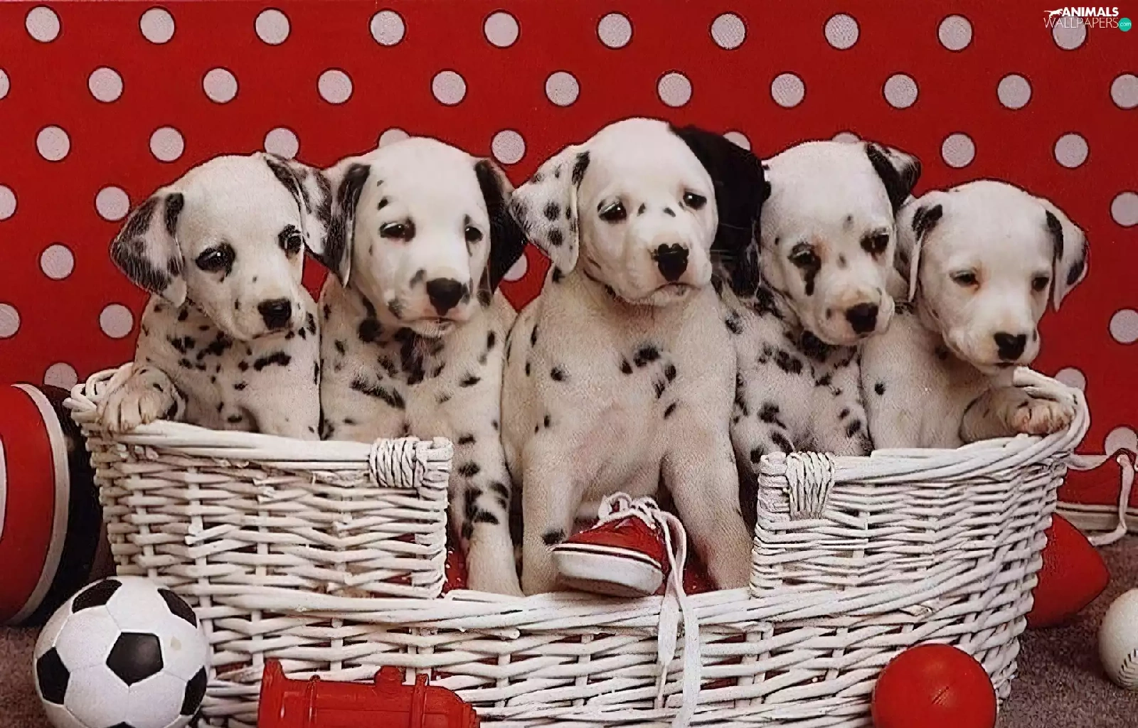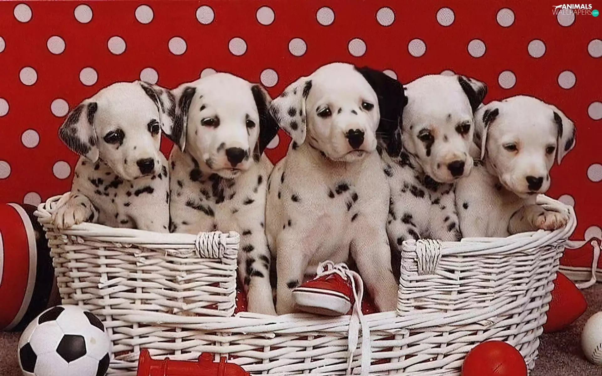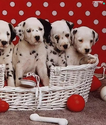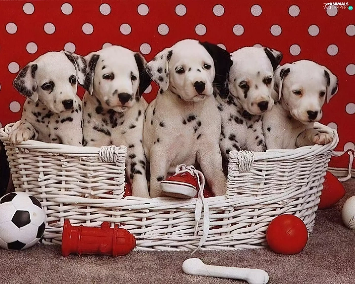 basket, puppies, Dalmatians