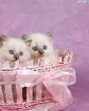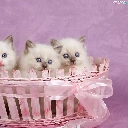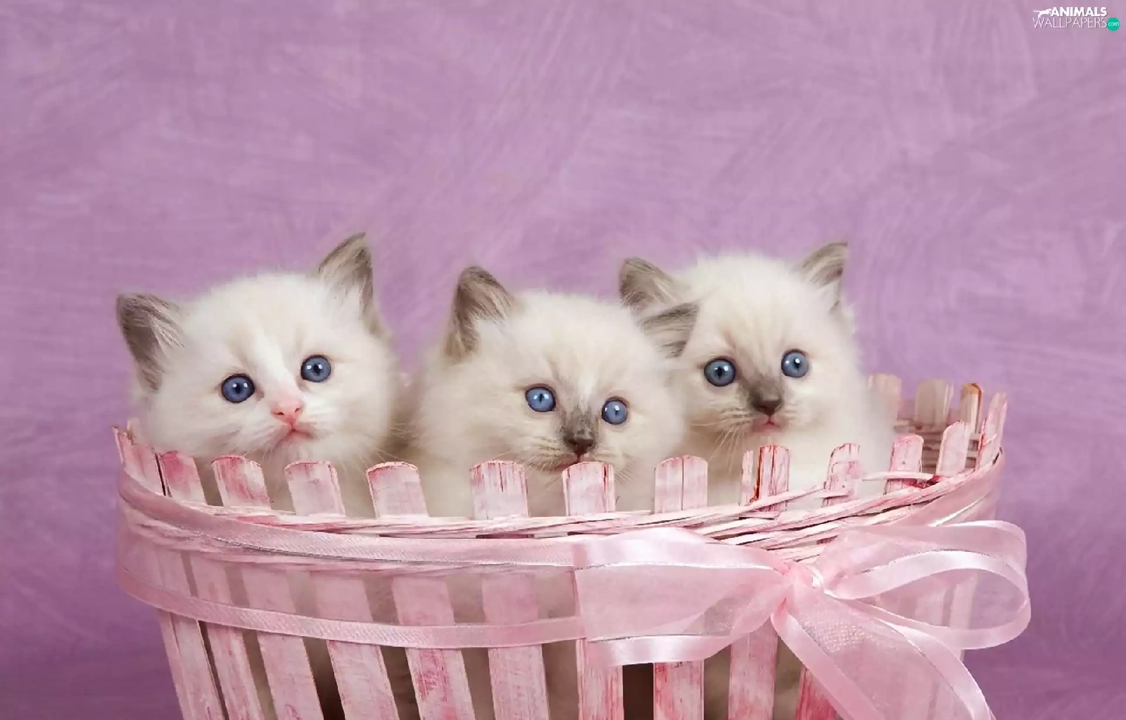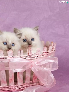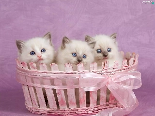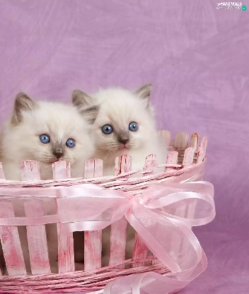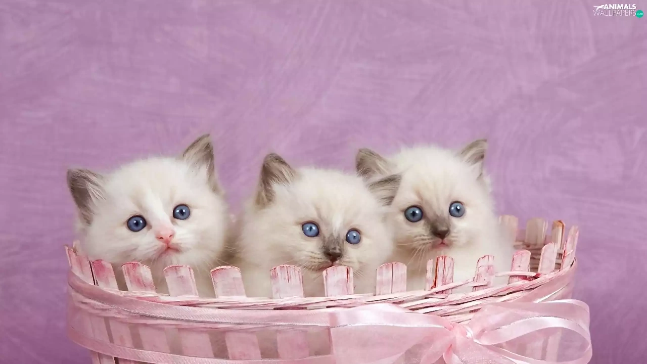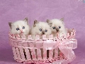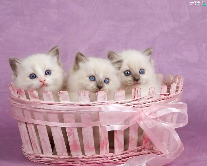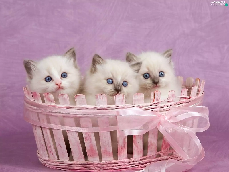 Pink, Three, kittens, basket