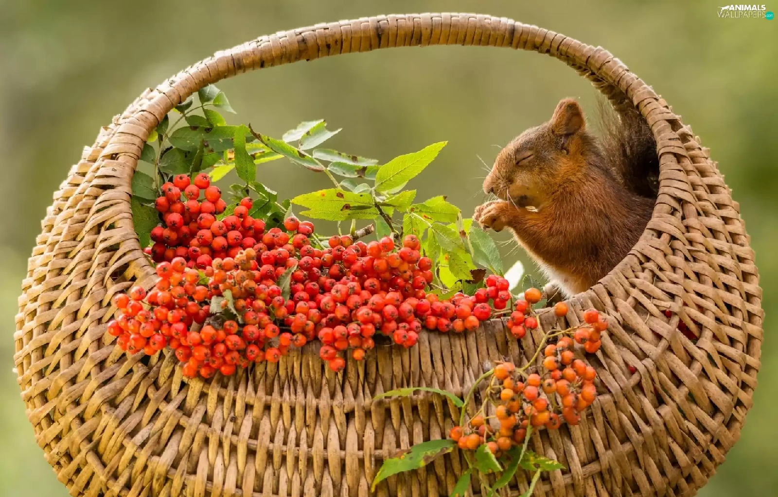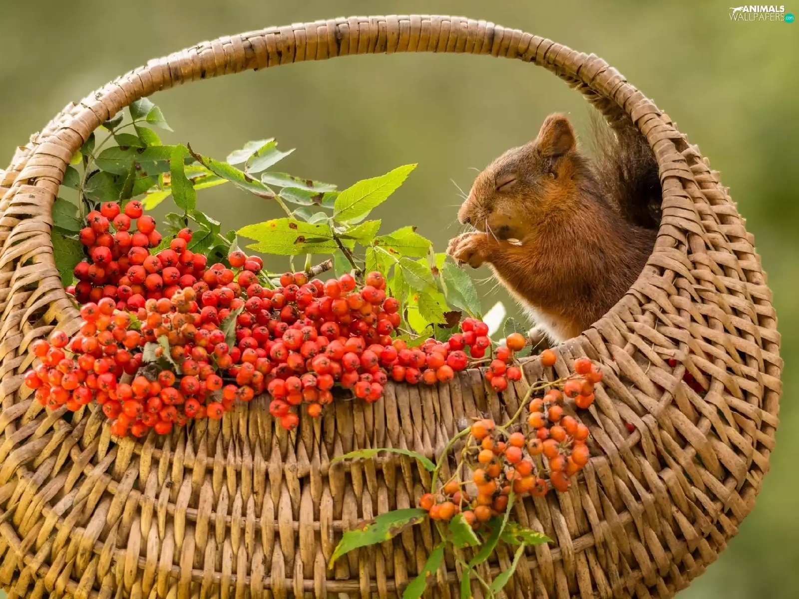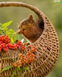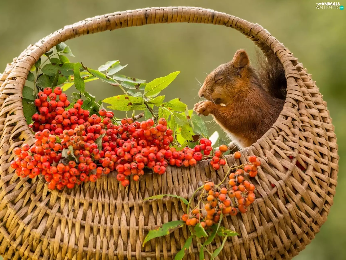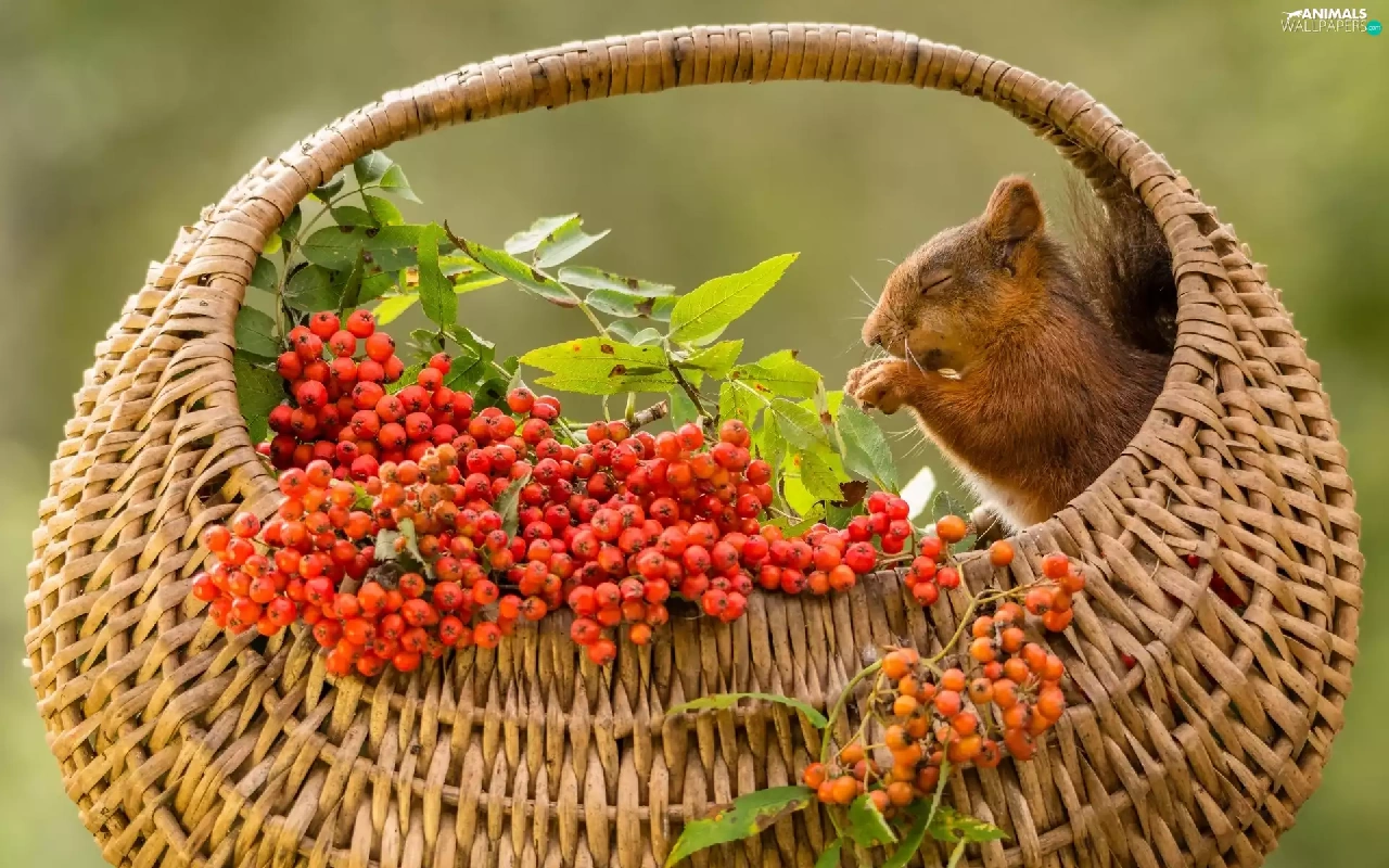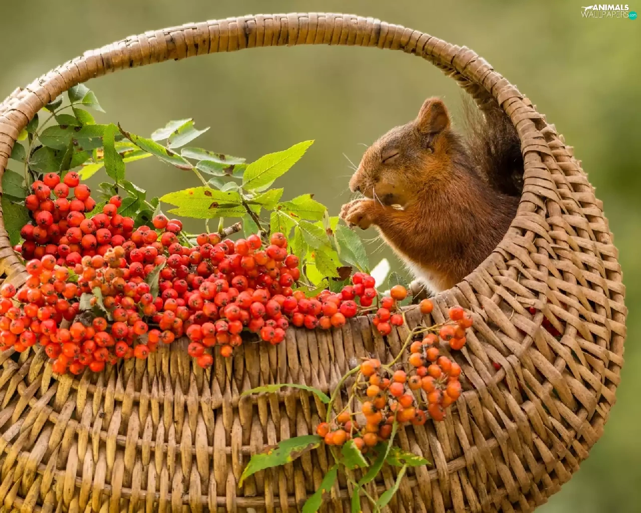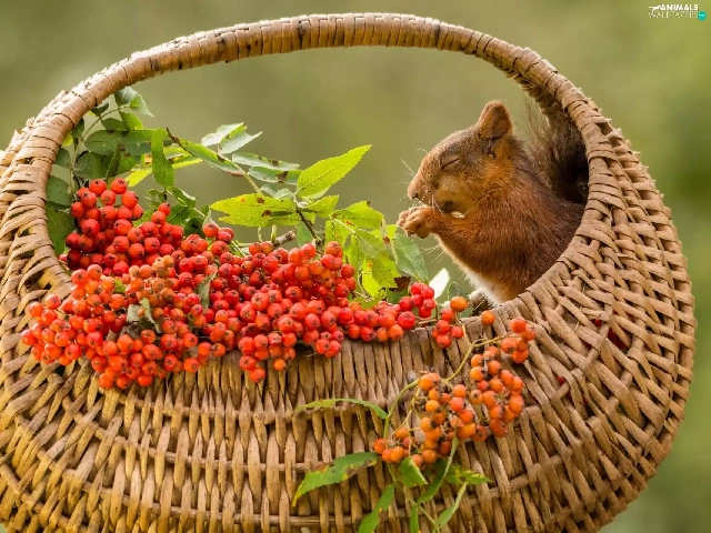 basket, squirrel, Plant