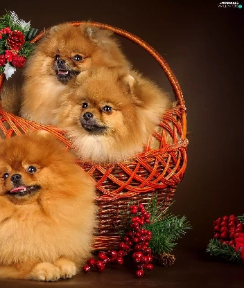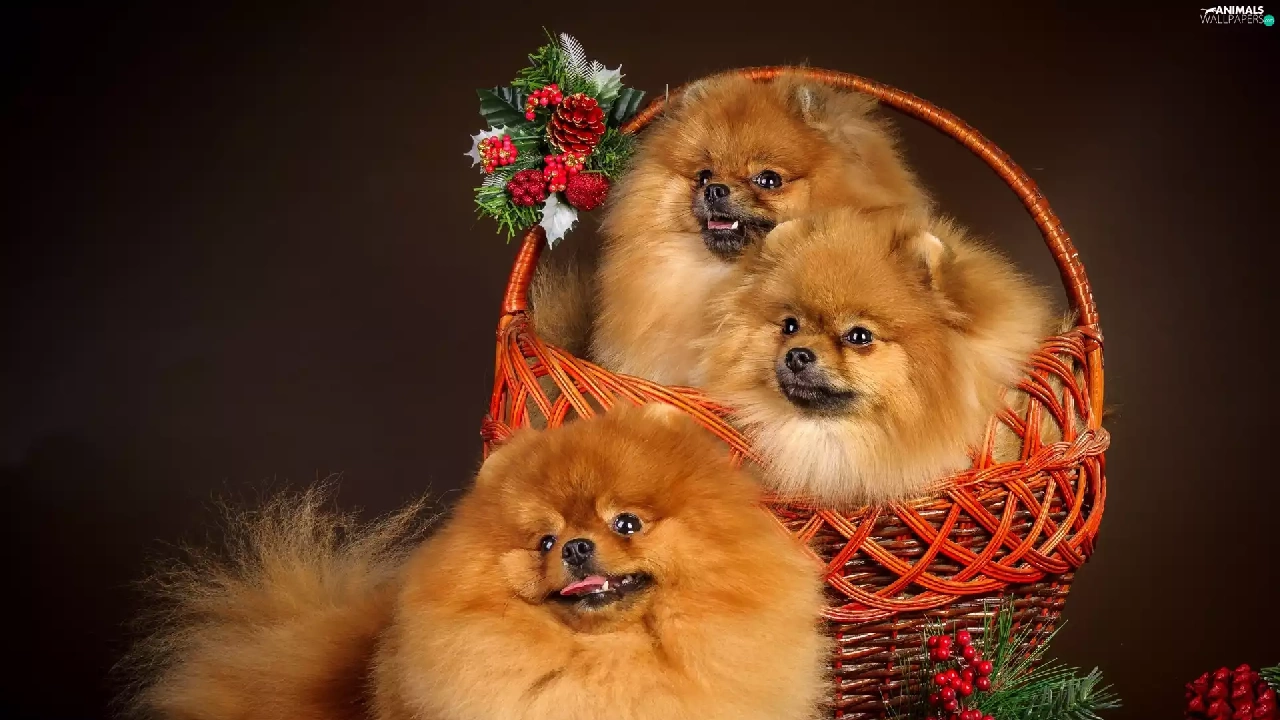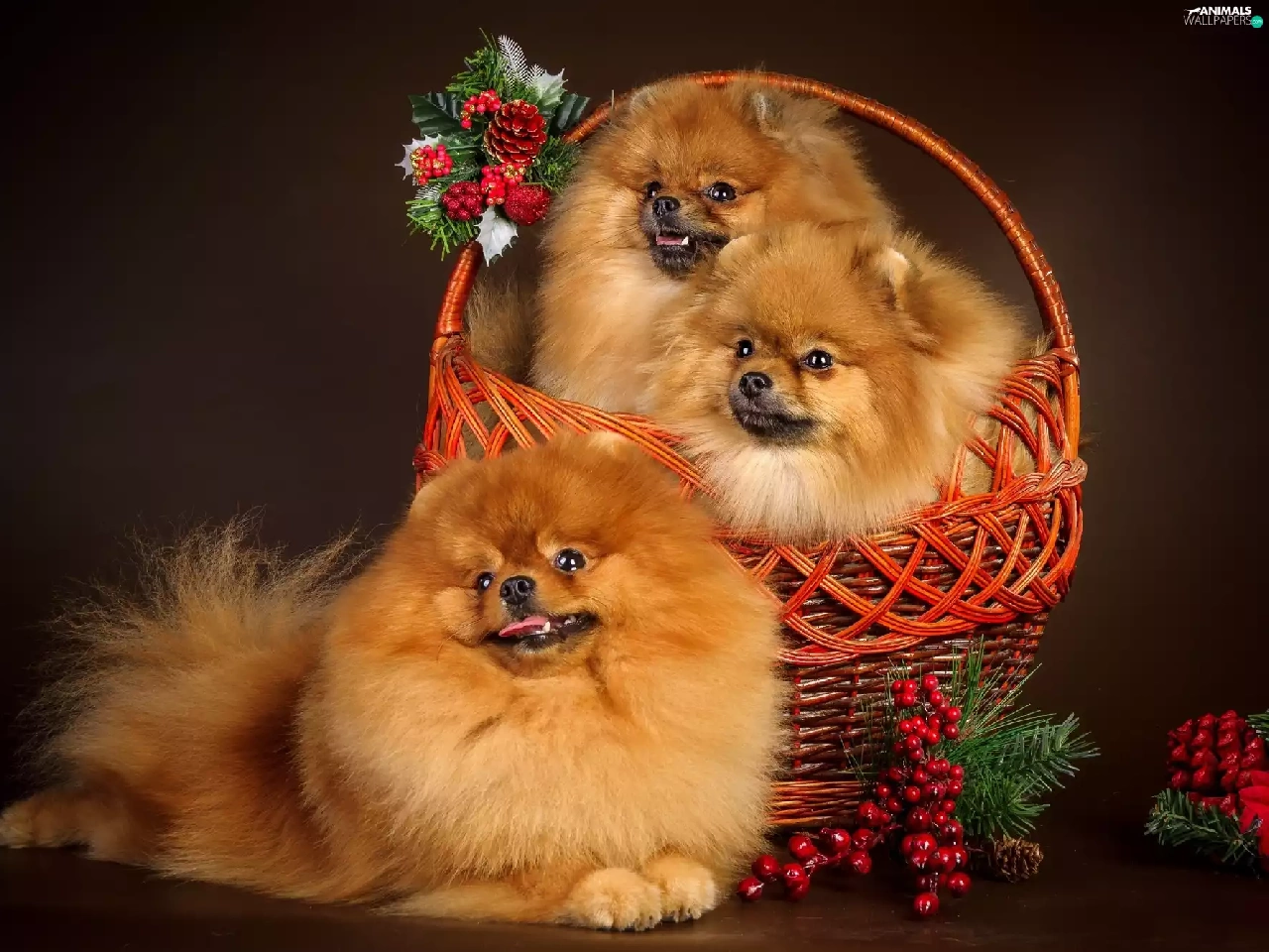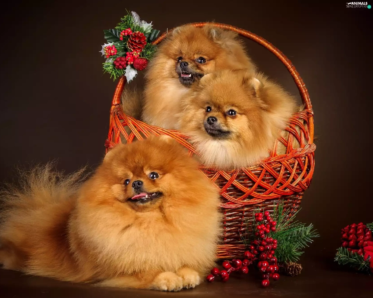 basket, Three, puppies