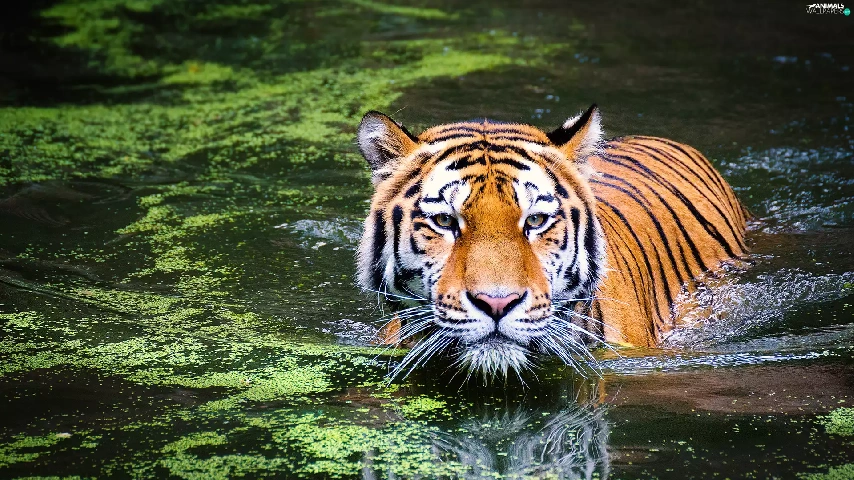 bath, tiger, water