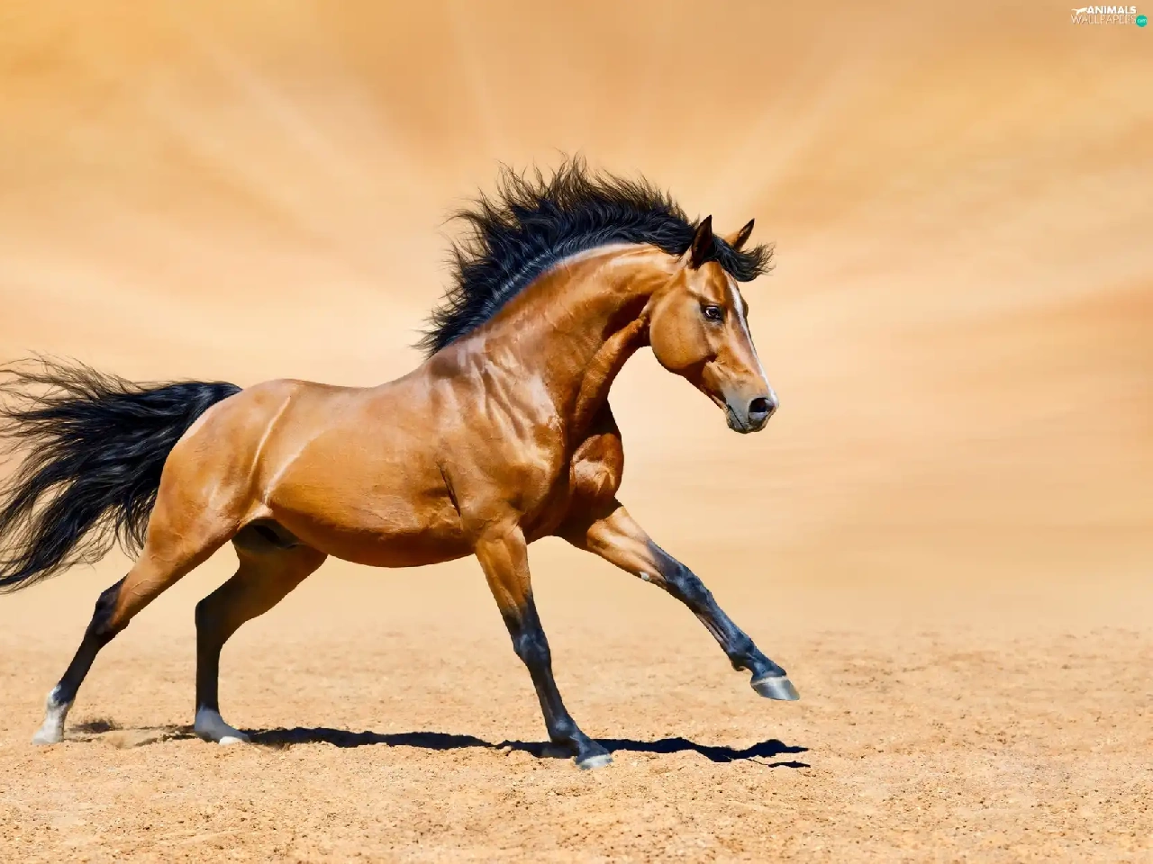 Horse, gear, Sand, bay