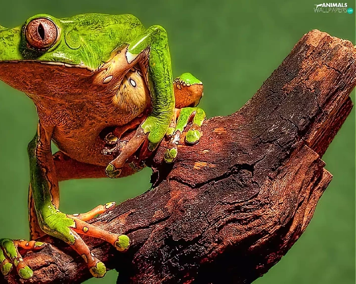 strange frog, trees, viewes, Lod on the beach