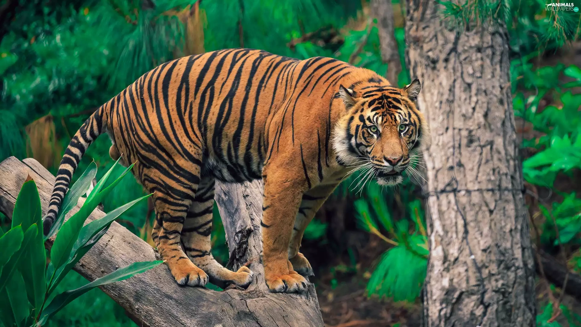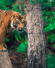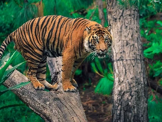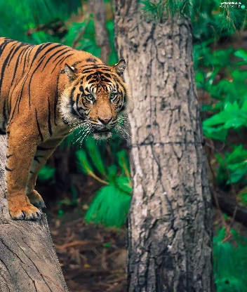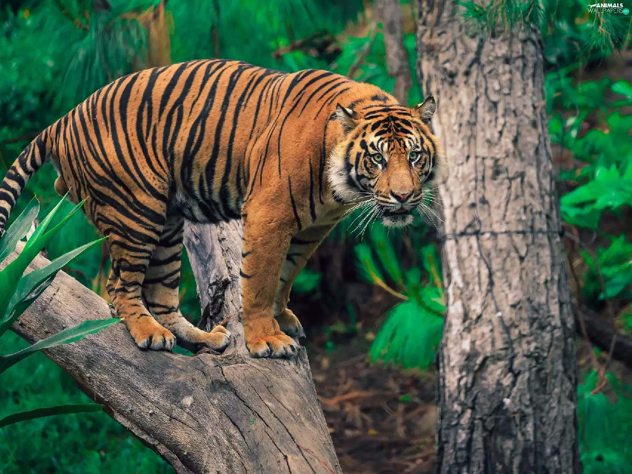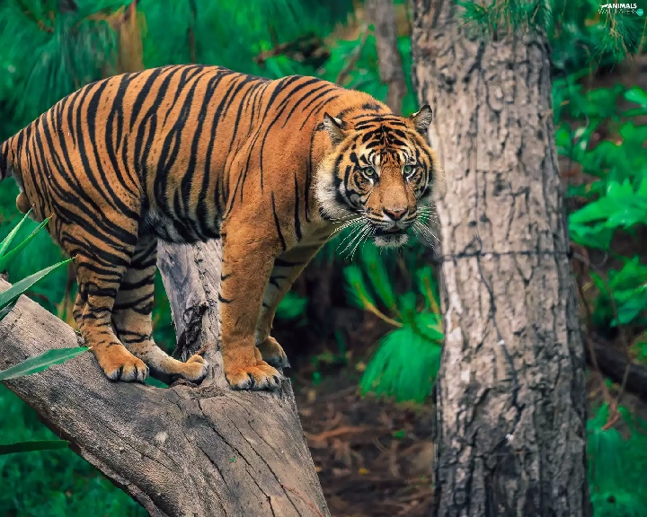 Lod on the beach, tiger, trees