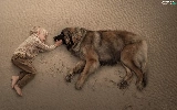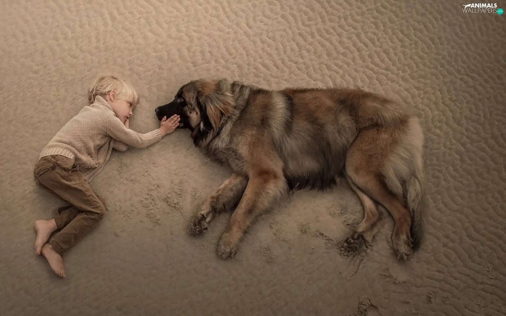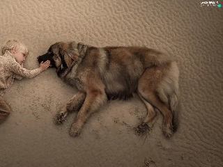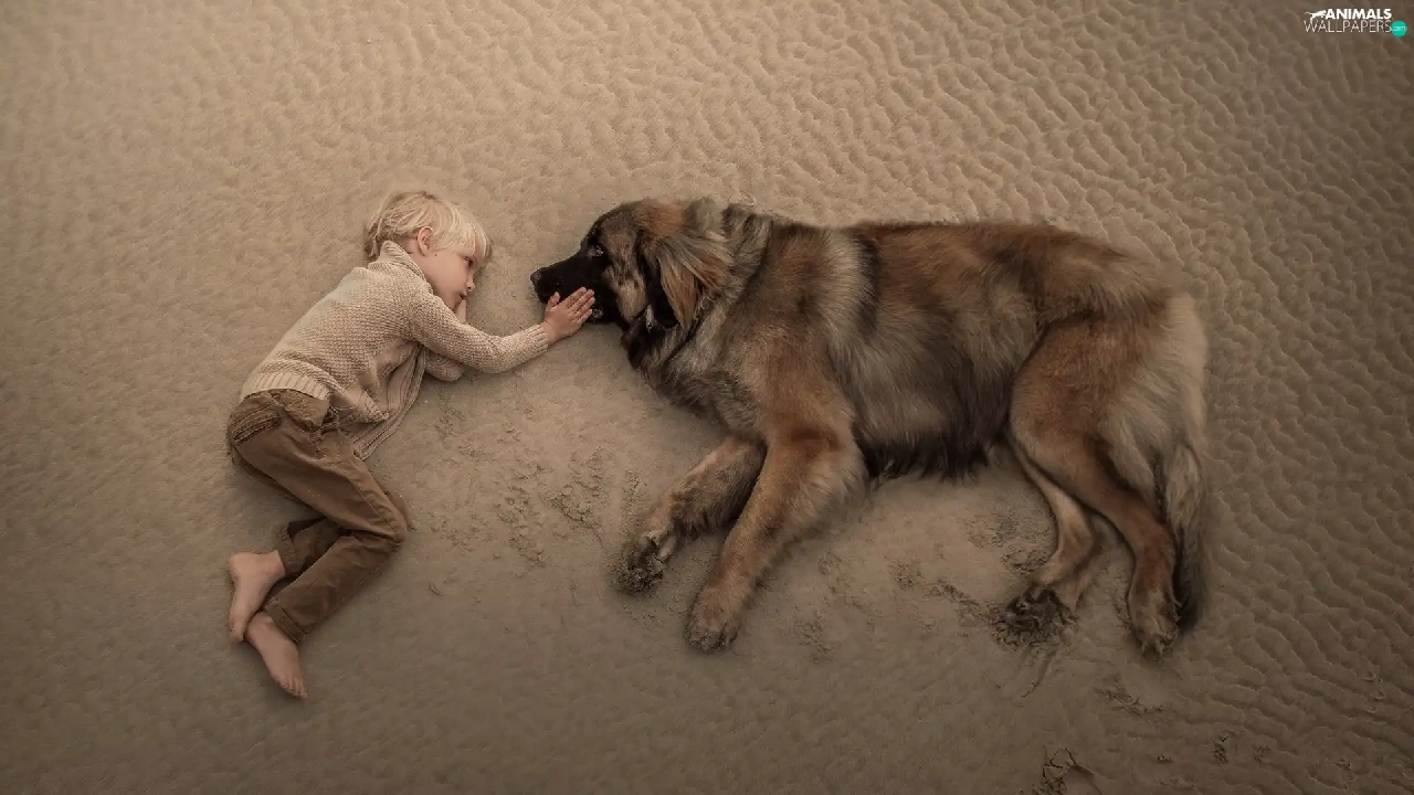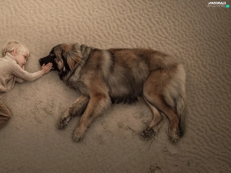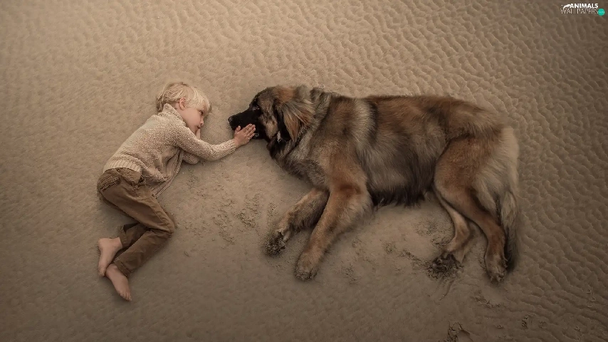 boy, Leonberger, Beaches, dog