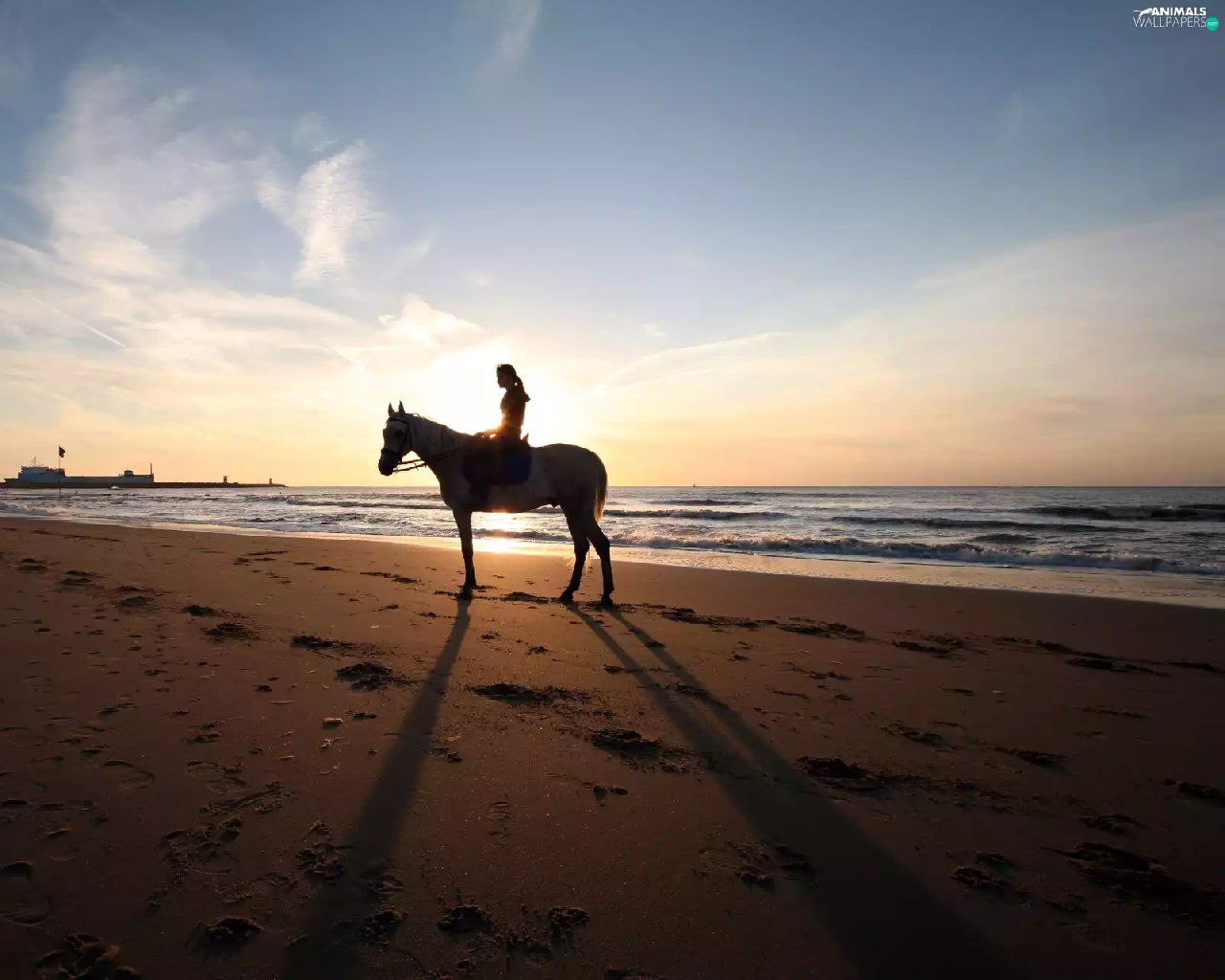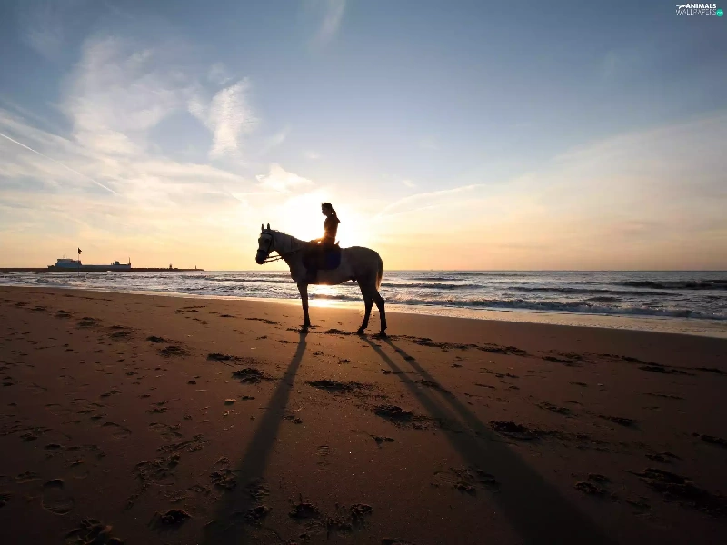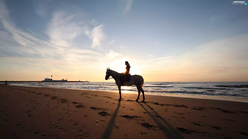 sea, Horse, girl, Beaches