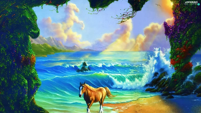Beaches, Horse, sea