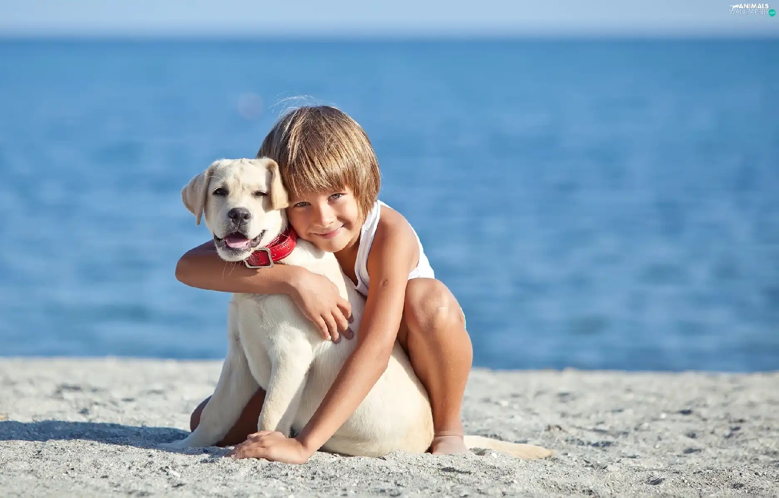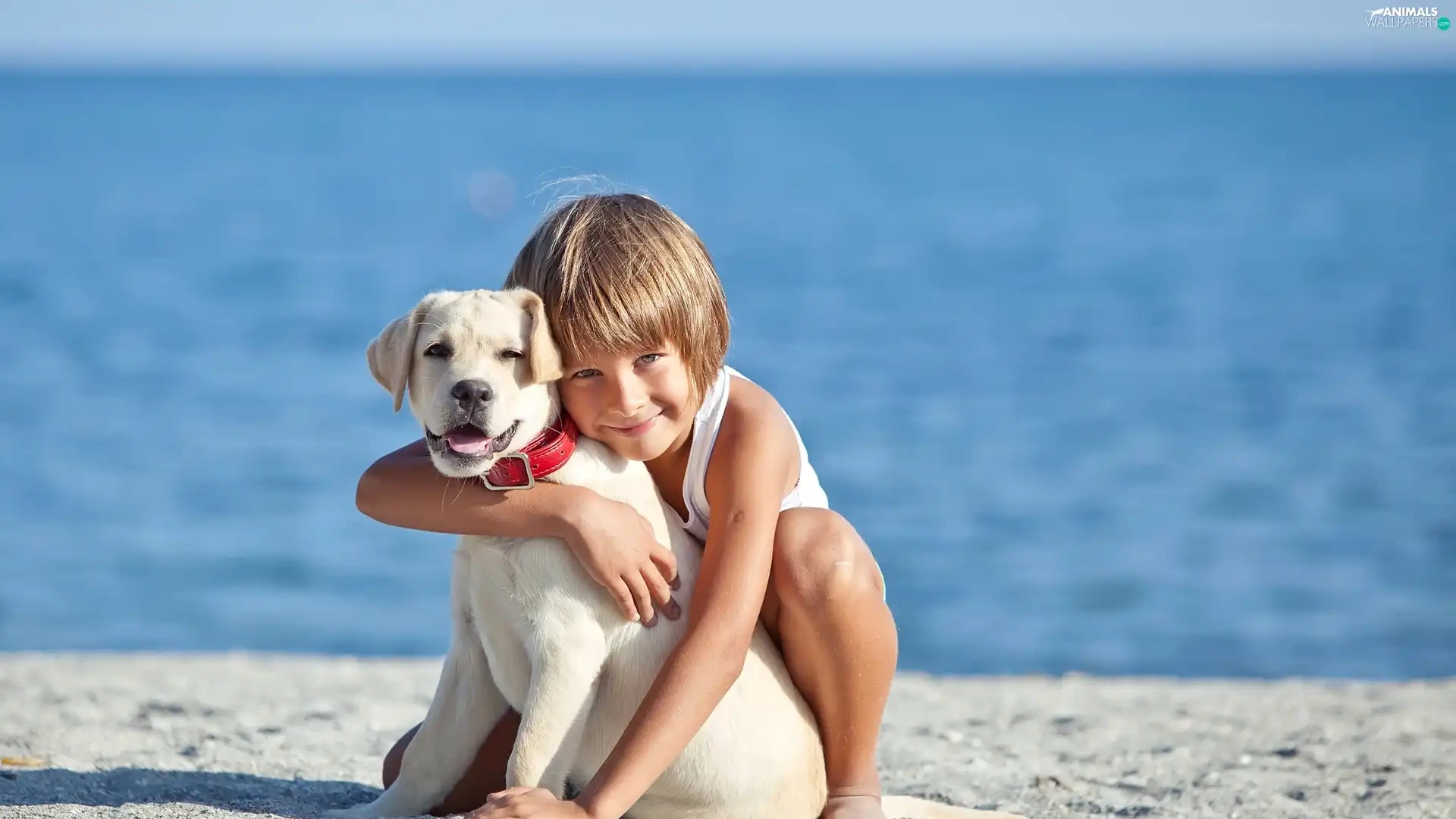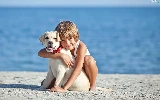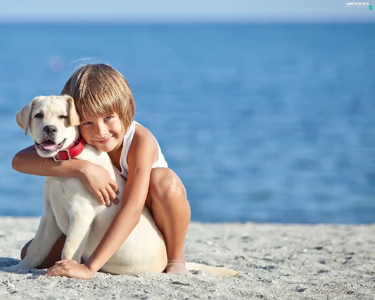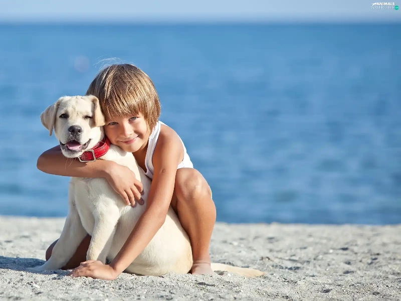 Beaches, water, Puppy, Labrador Retriever, Kid