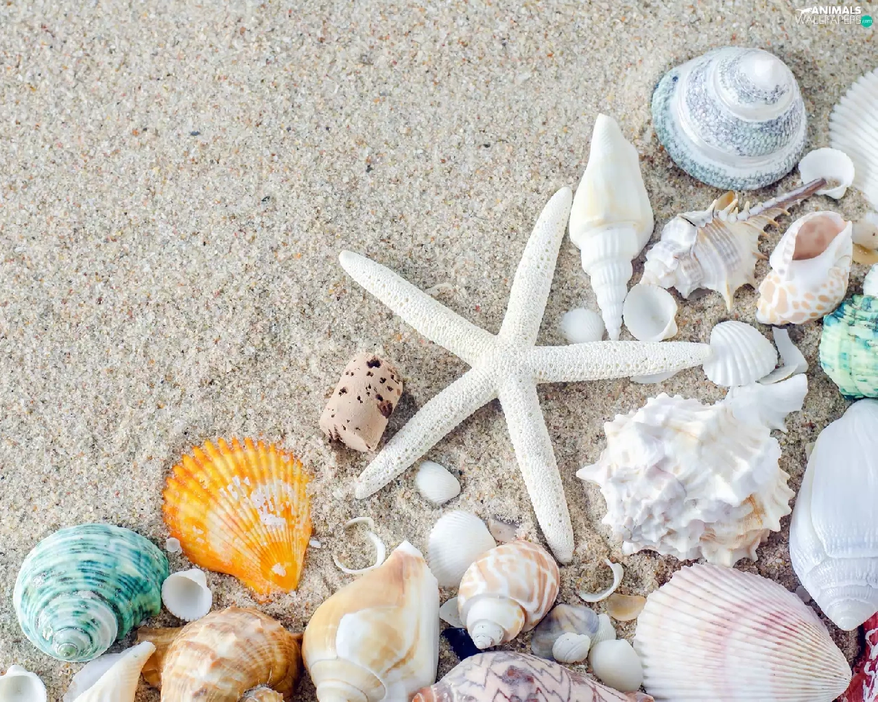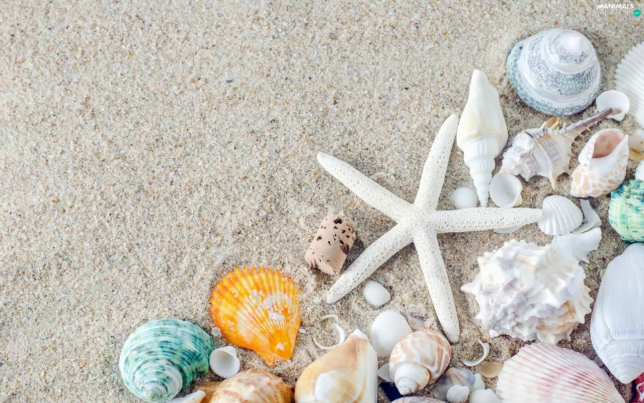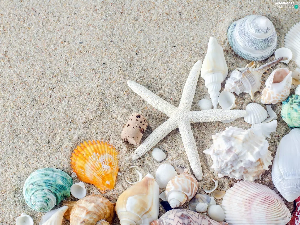 Sand, Beaches, White, starfish, Shells