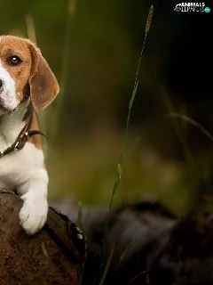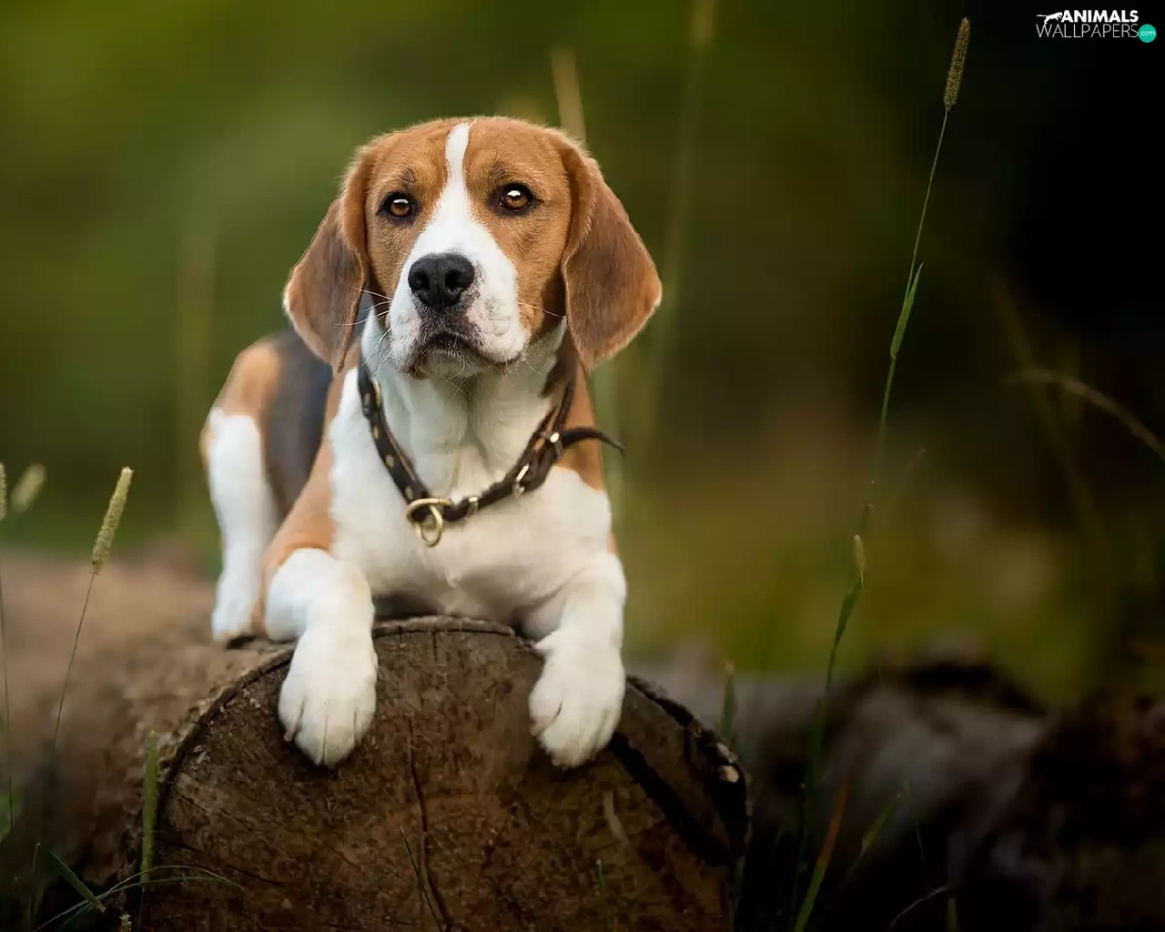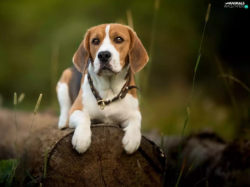 dog, Logs, plants, Beagle