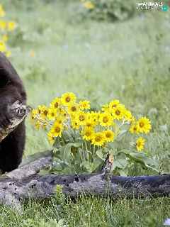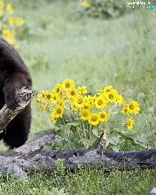 teddy bear, Flowers, Meadow, trees
