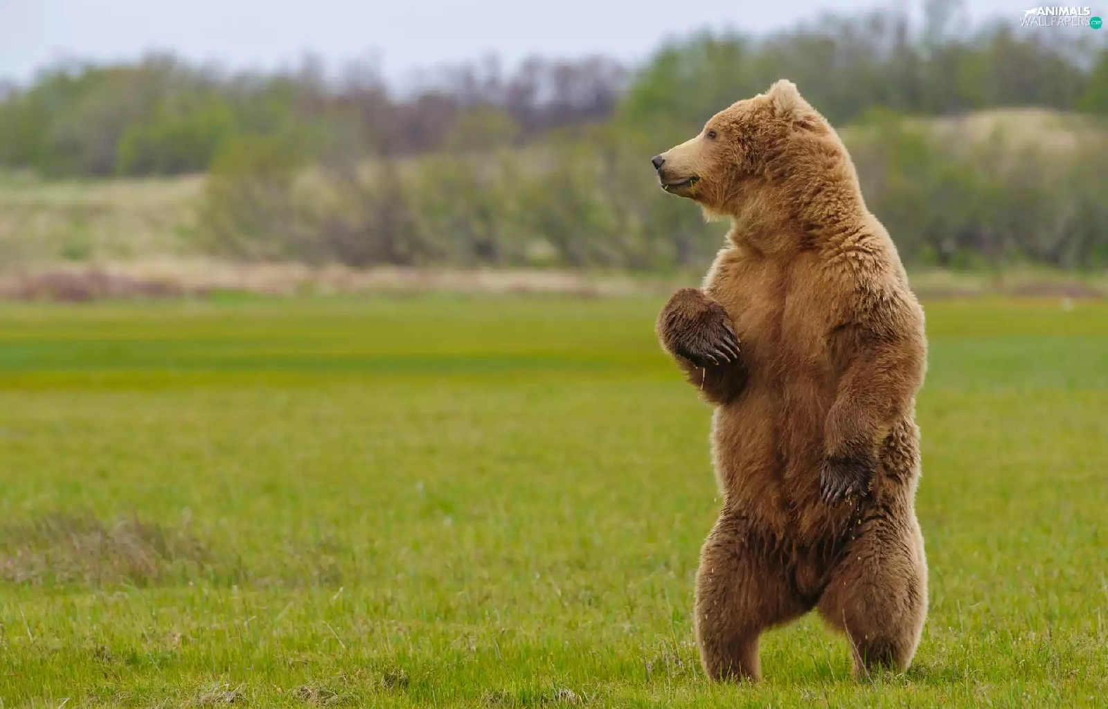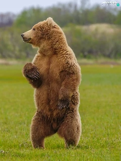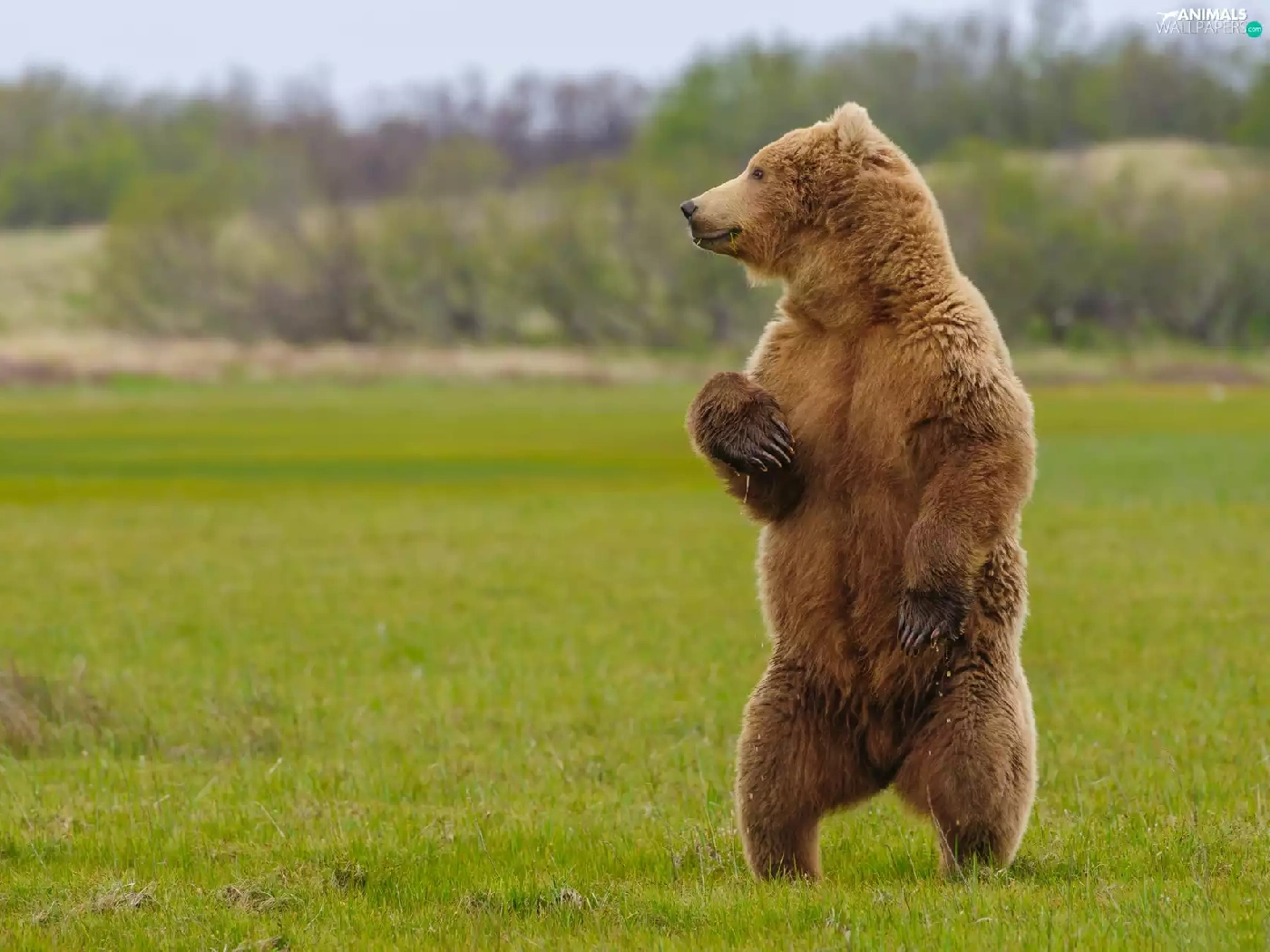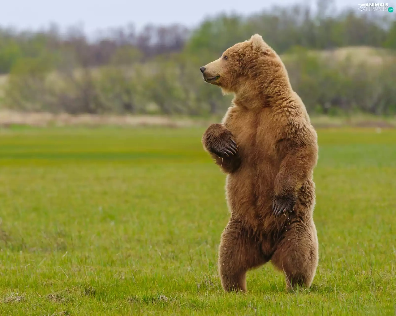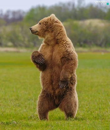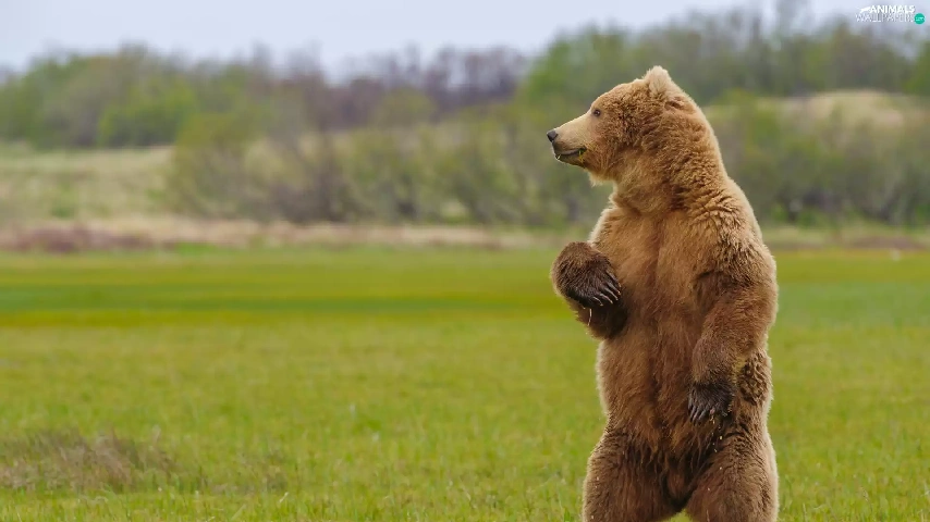 standing, Grizzly, grass, Bear
