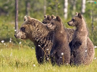 staring, Gryzli, grass, bear