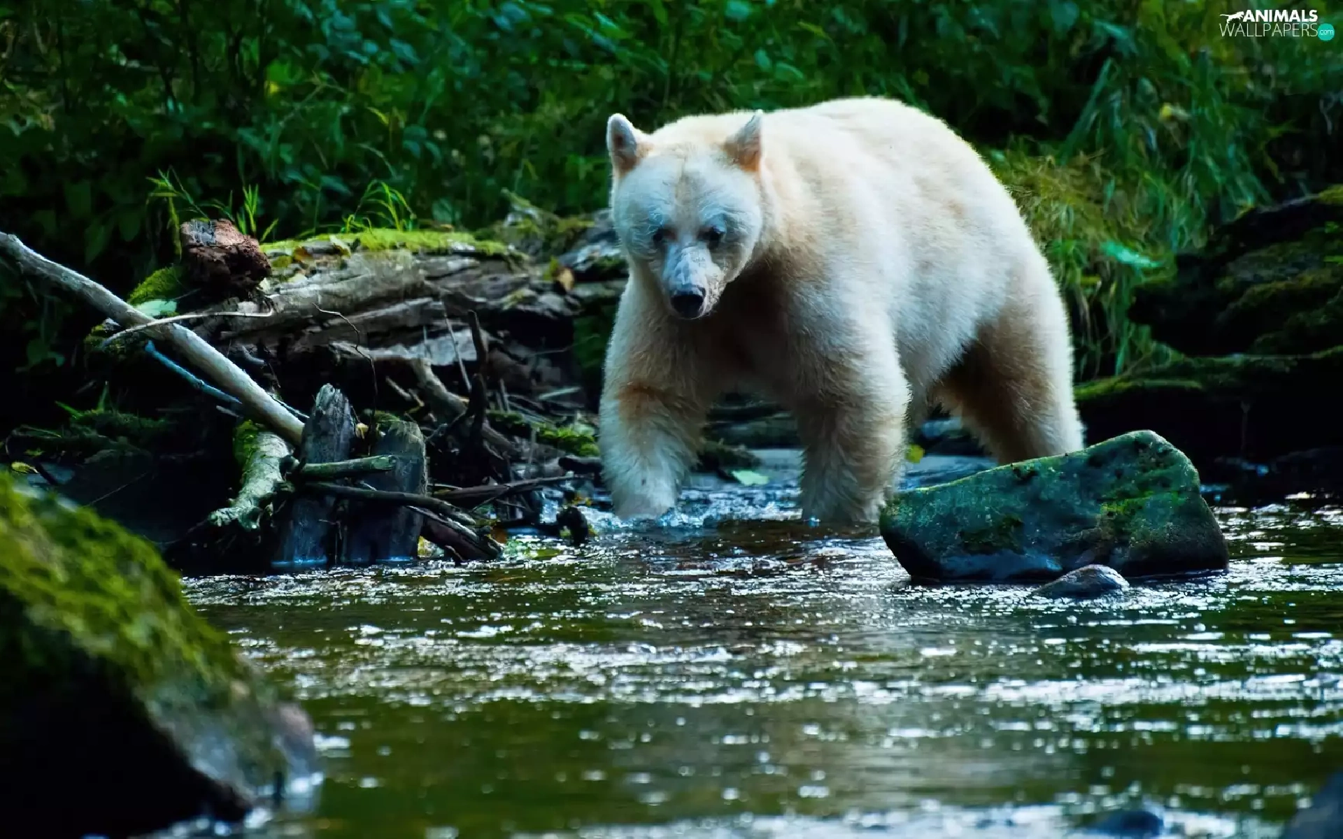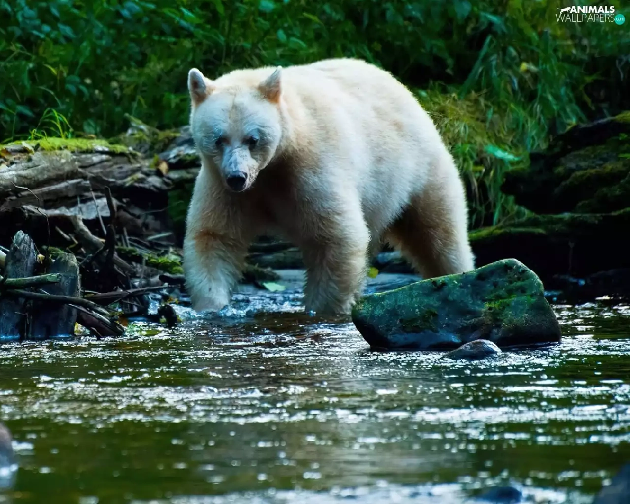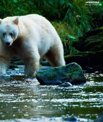 viewes, Bear, Stones, trees, River