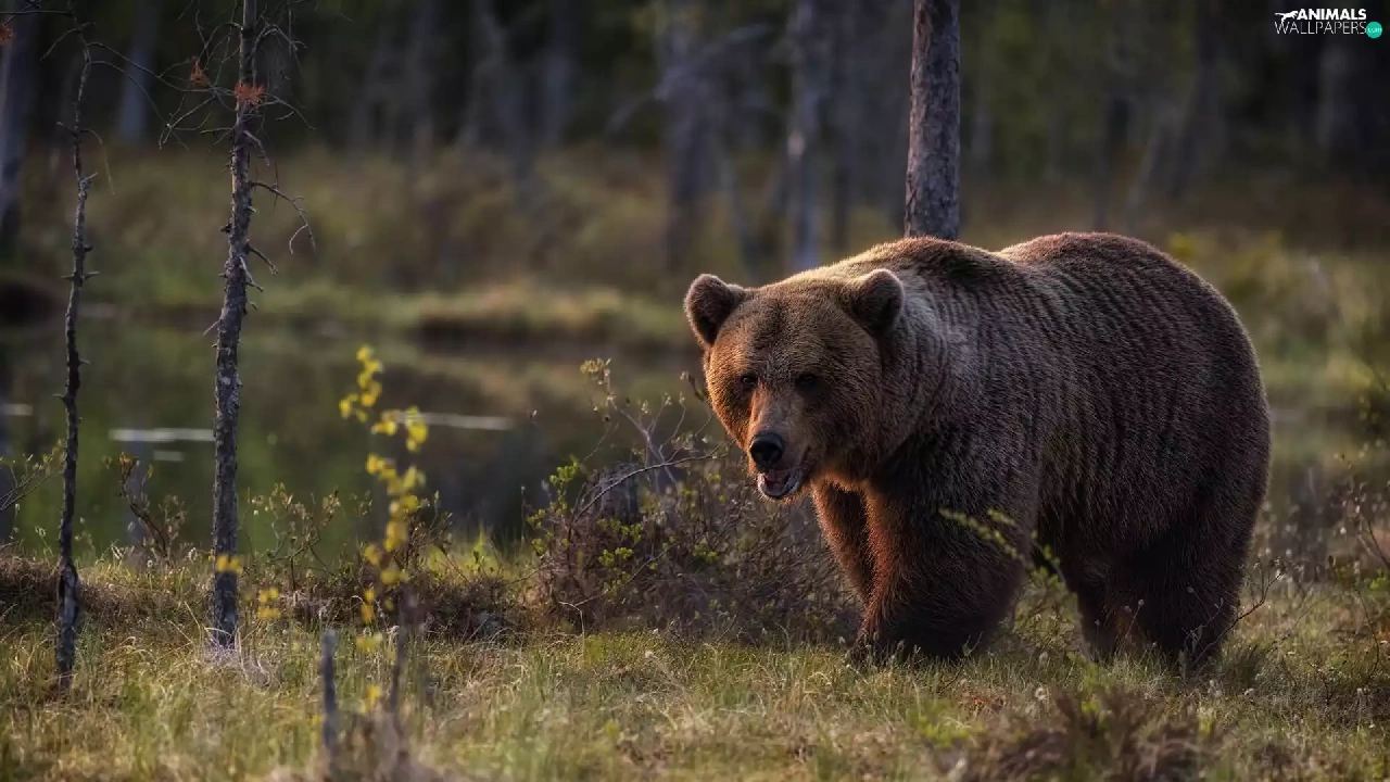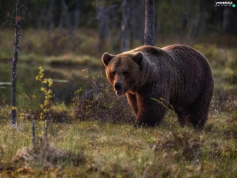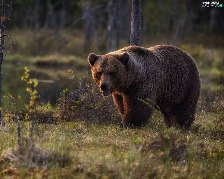 Brown bear, trees, viewes, forest