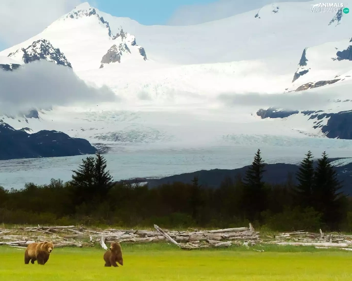 Mountains, dry, Stems, bears