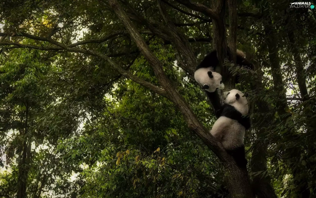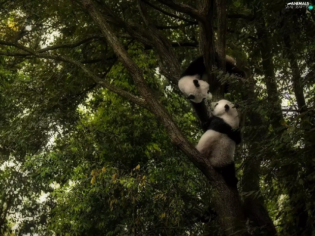 Little bears, trees, Leaf, pandas