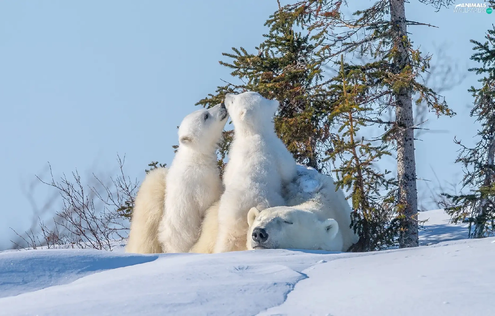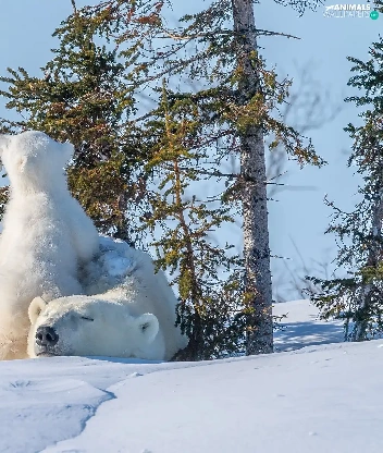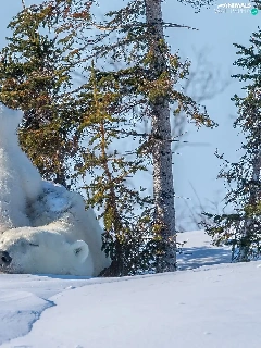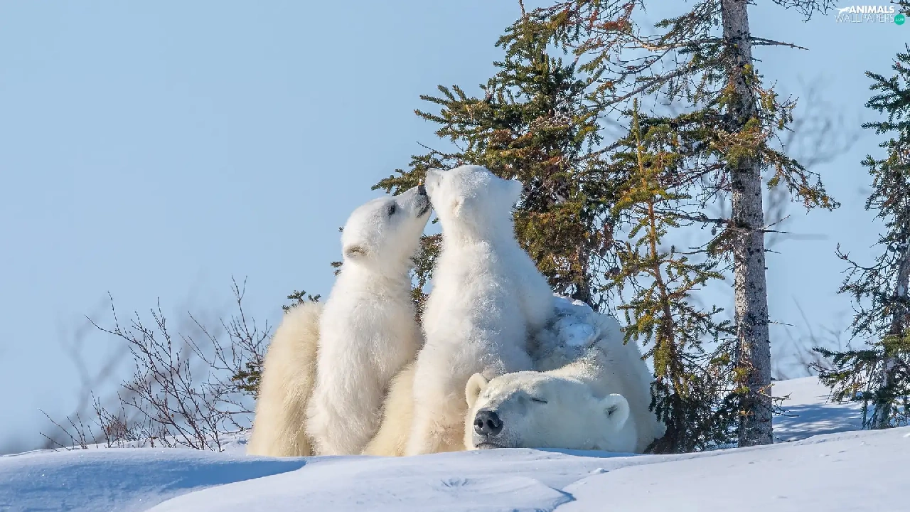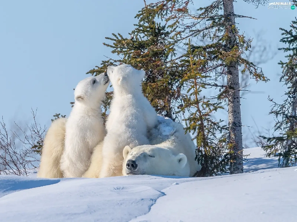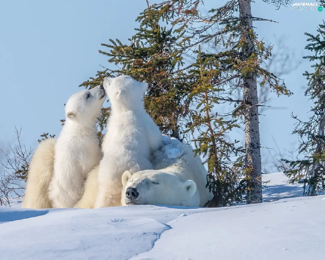 trees, viewes, Two cars, Little bears, Polar Bears