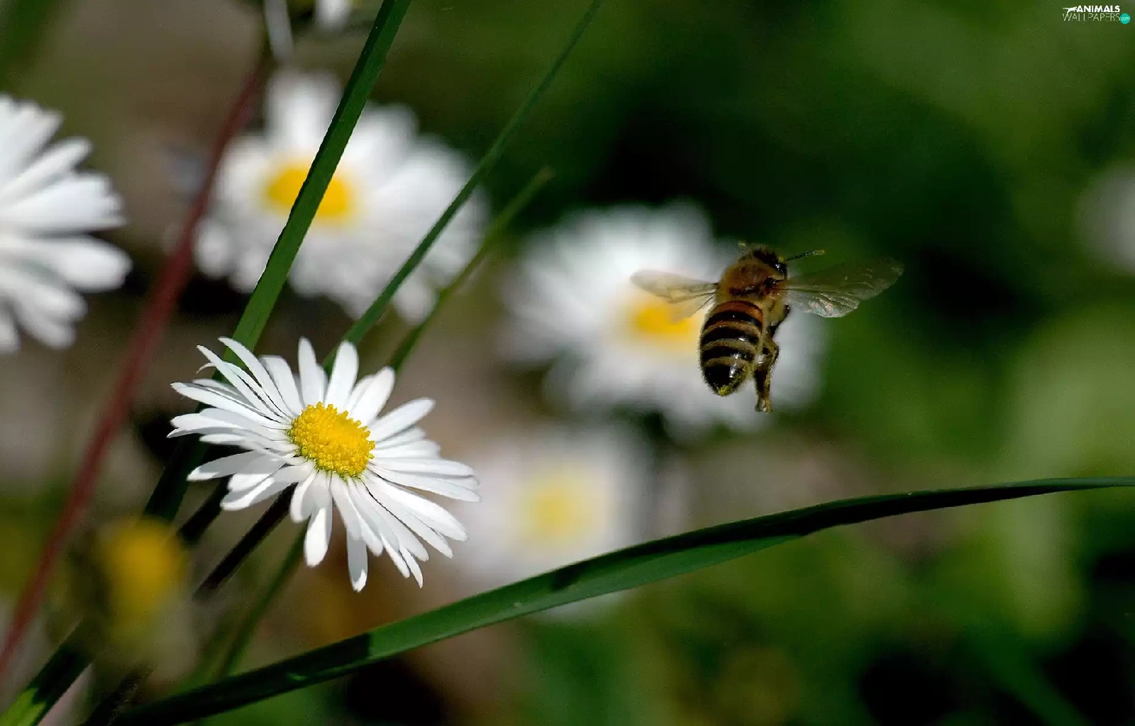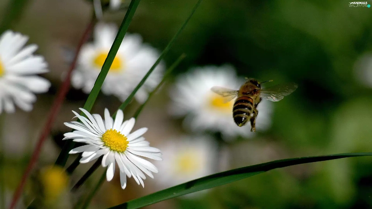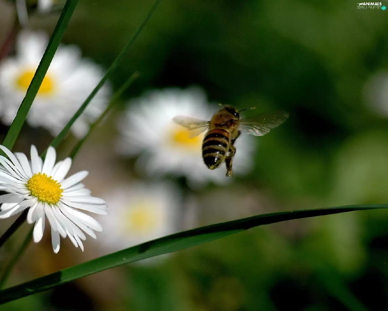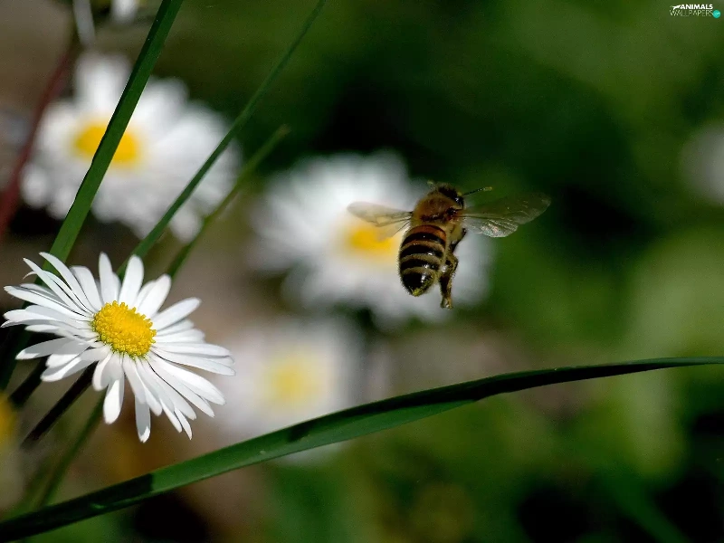 bee, daisies