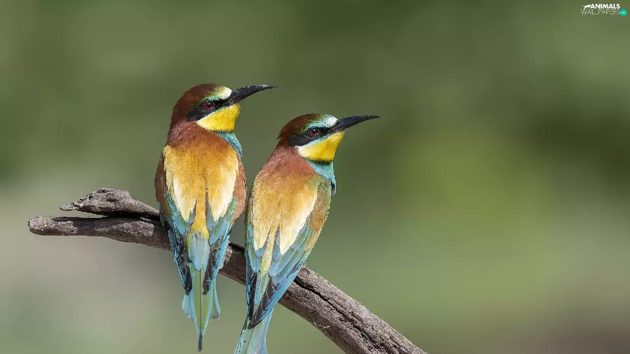 birds, Bee-eaters, branch, Two