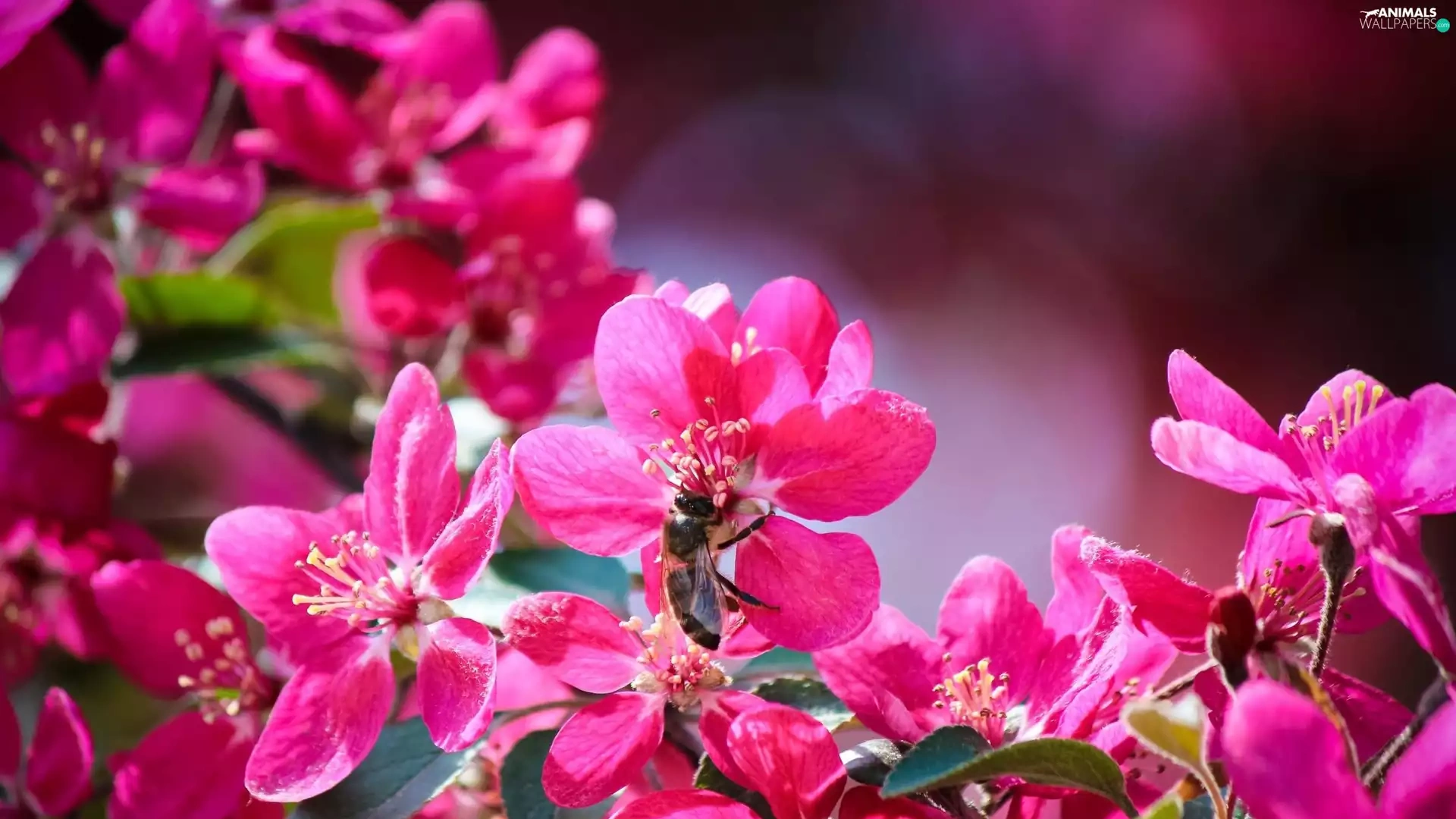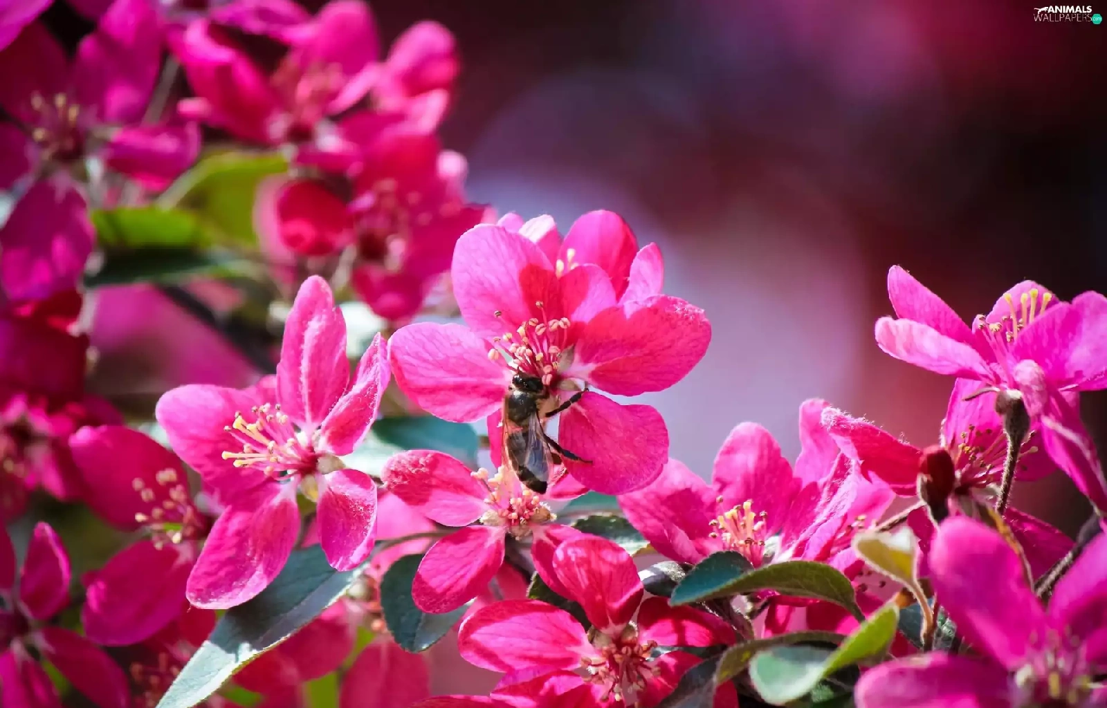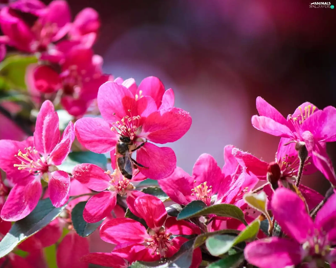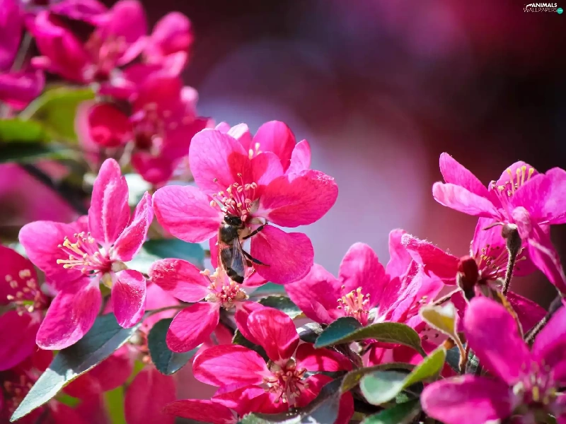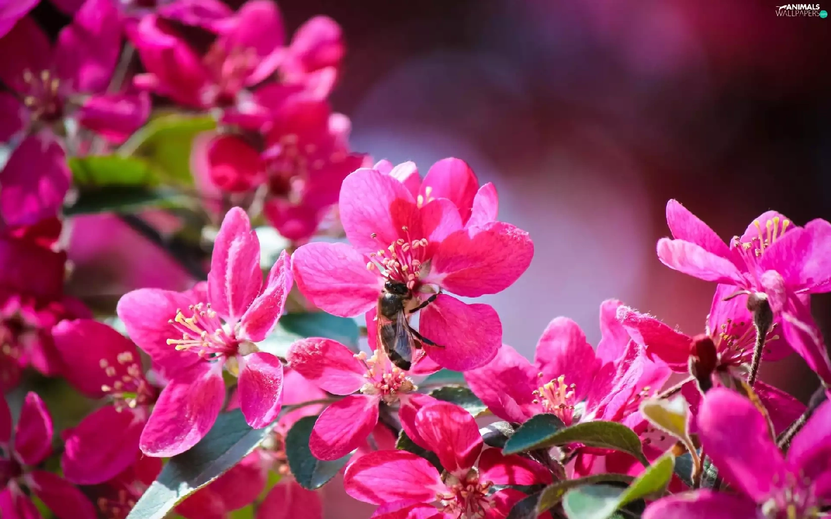 bee, flourishing, trees
