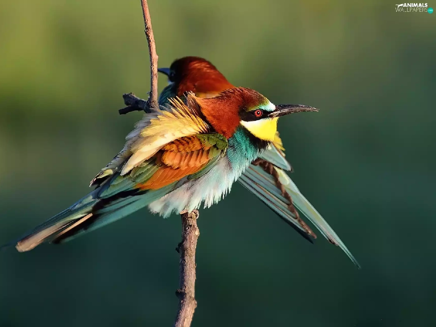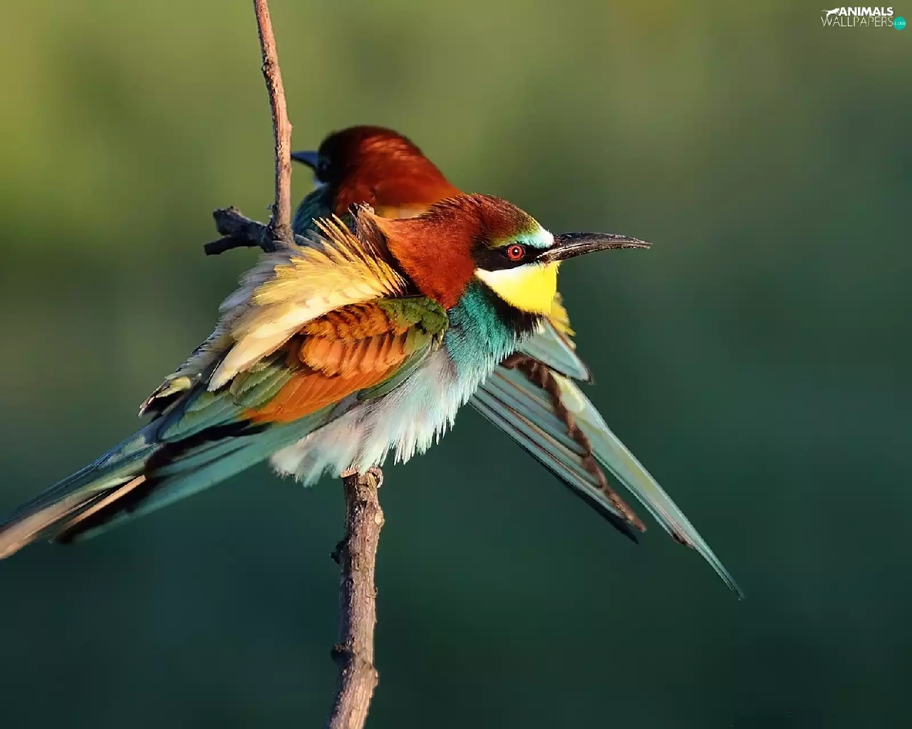 Bee-eaters, twig