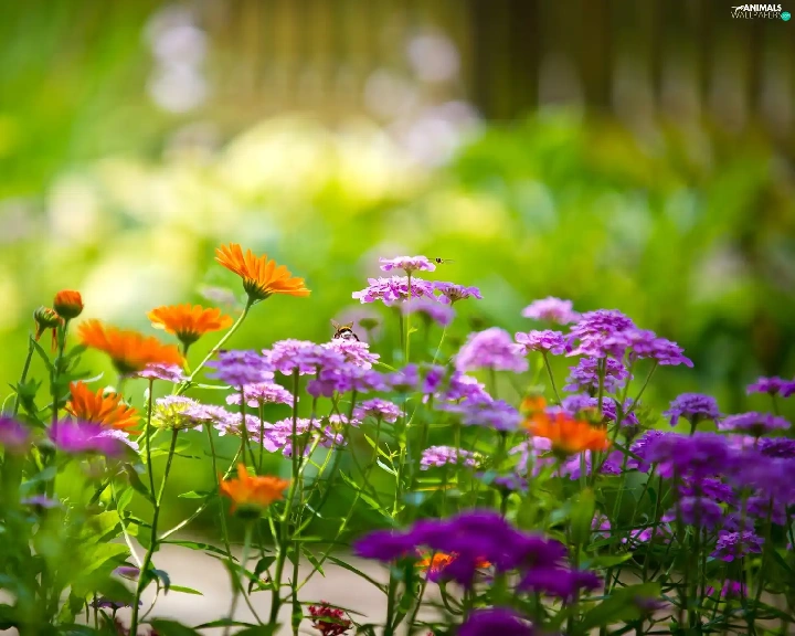 flowers, bees