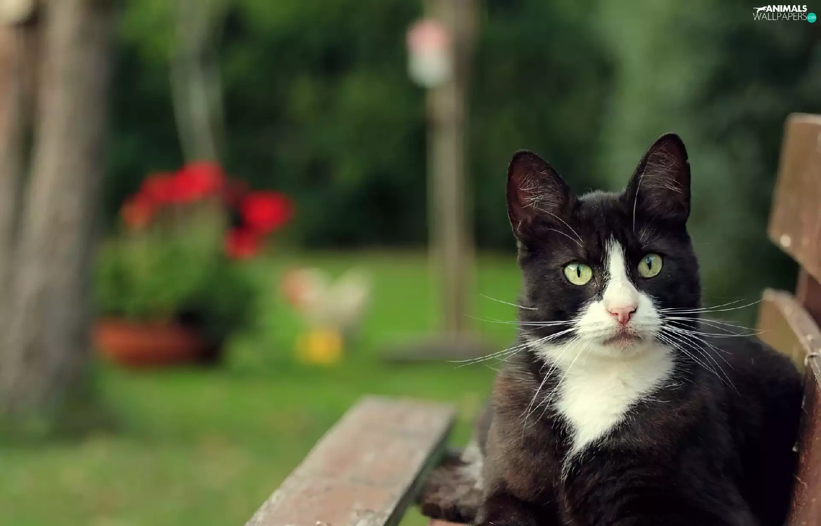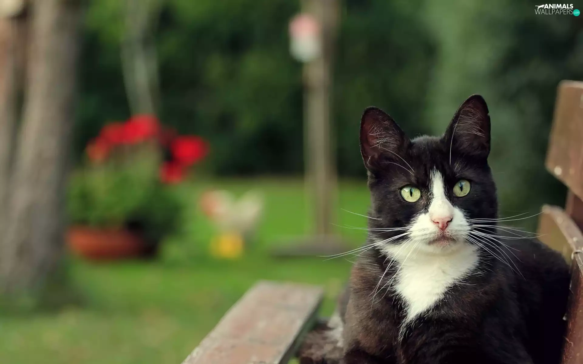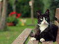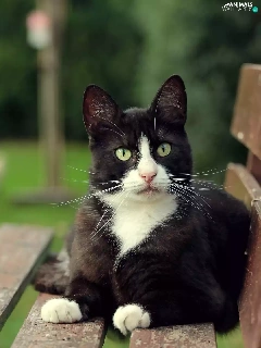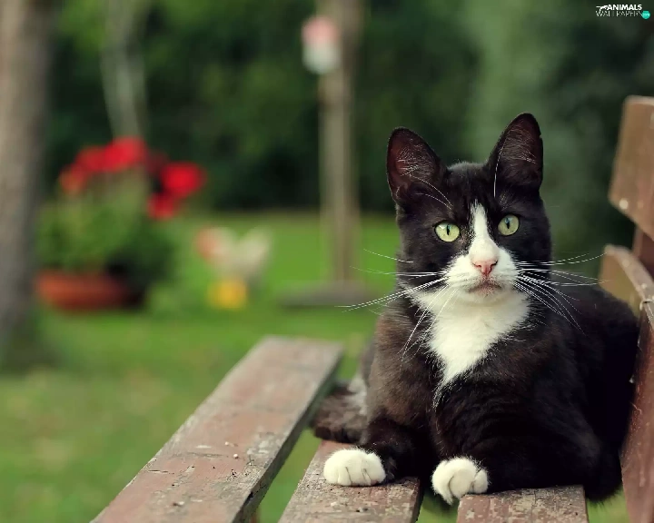 Garden, Black, cat, Bench
