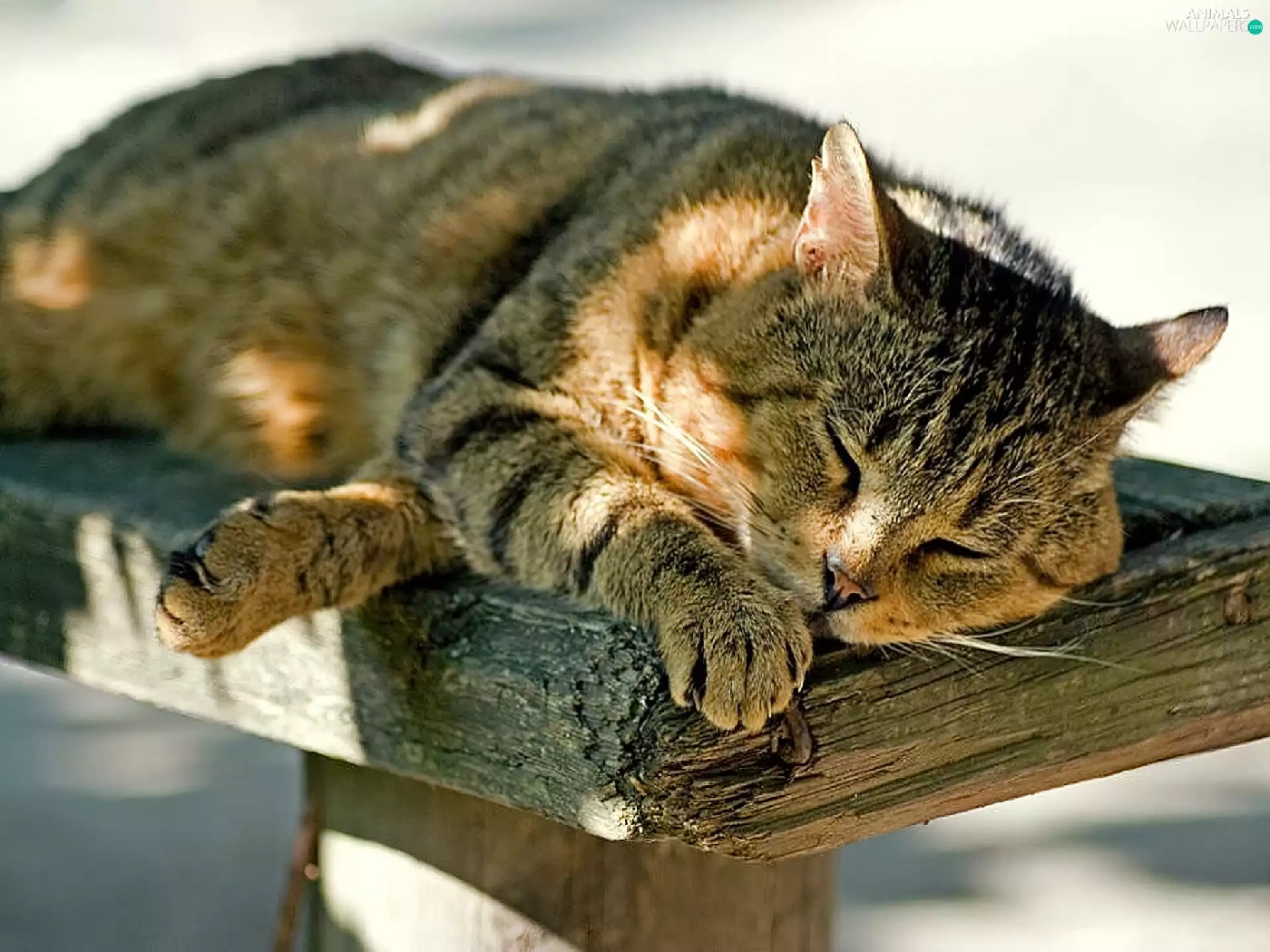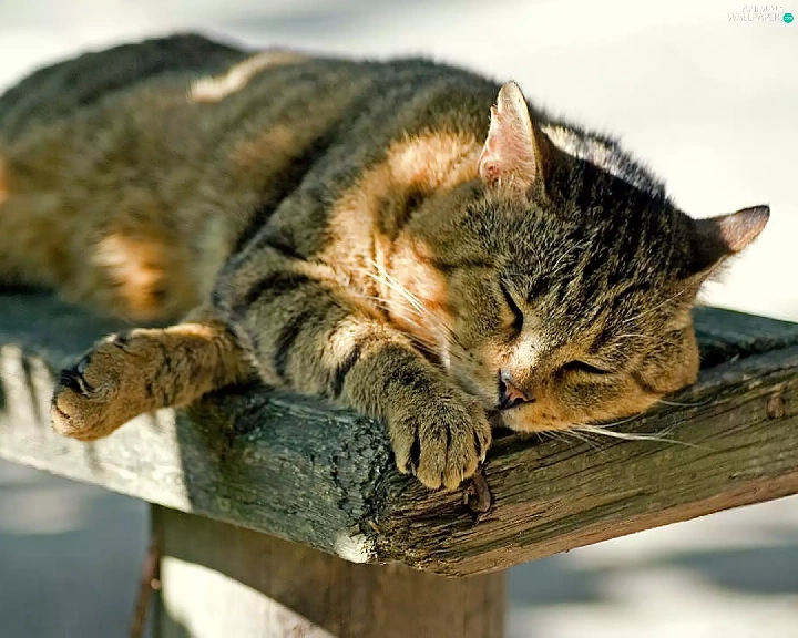 Bench, sleepy, kitten