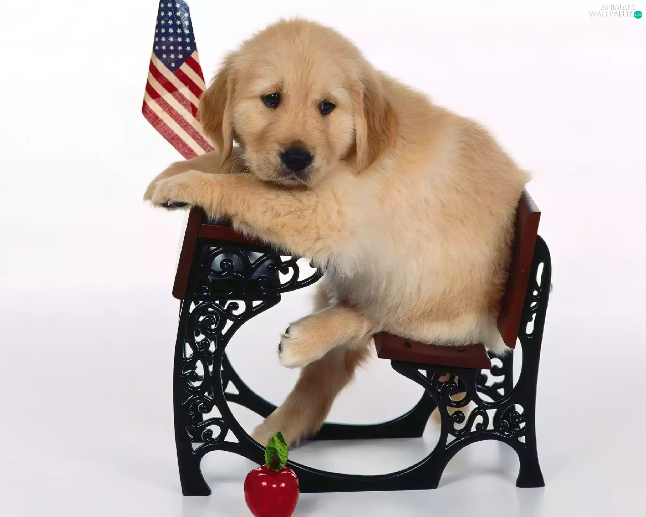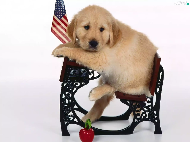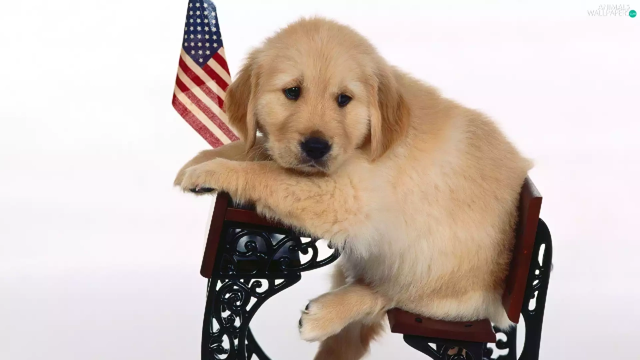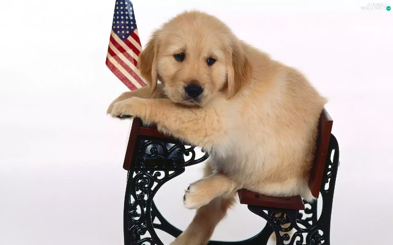 retriever, flag, USA, Bench