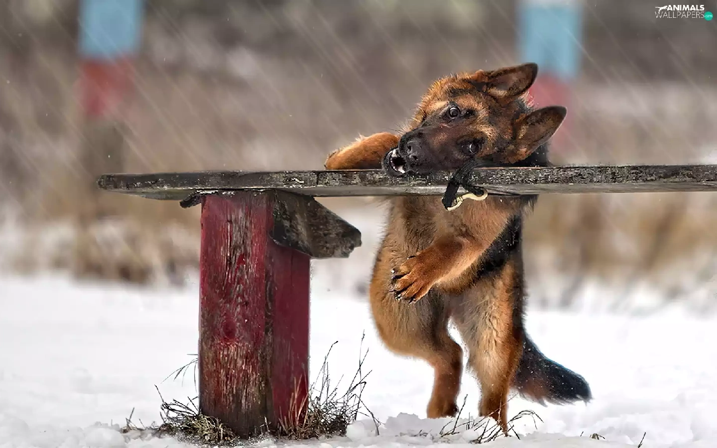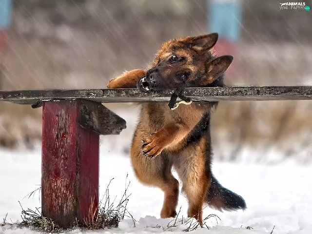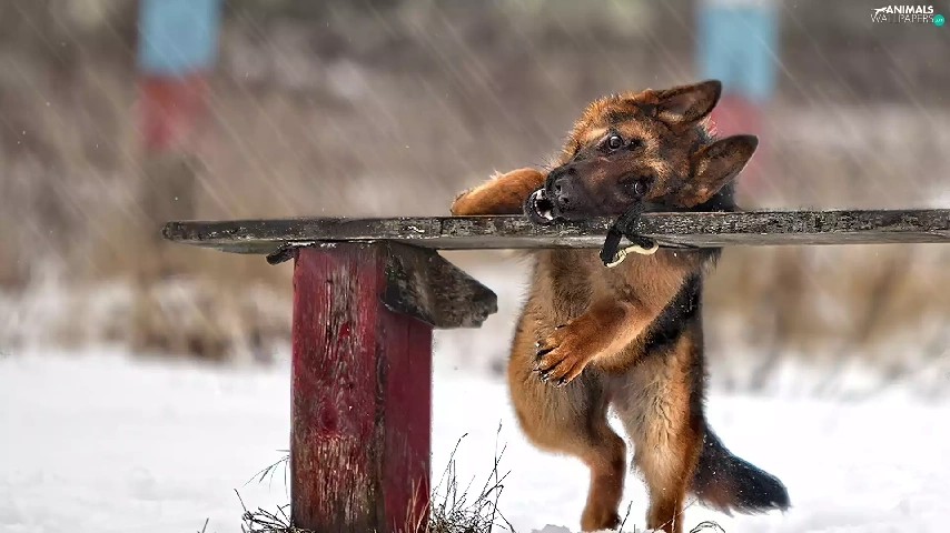 Bench, dog, winter