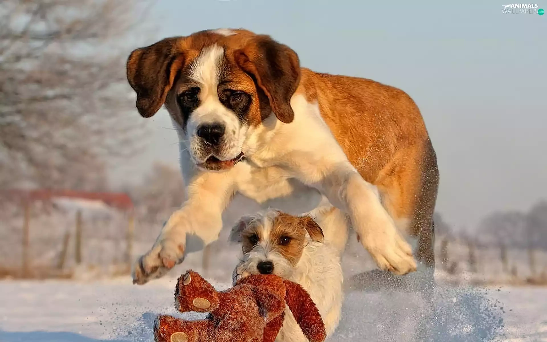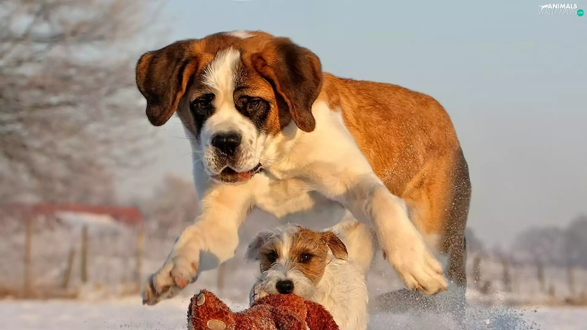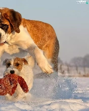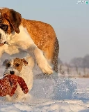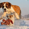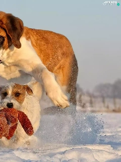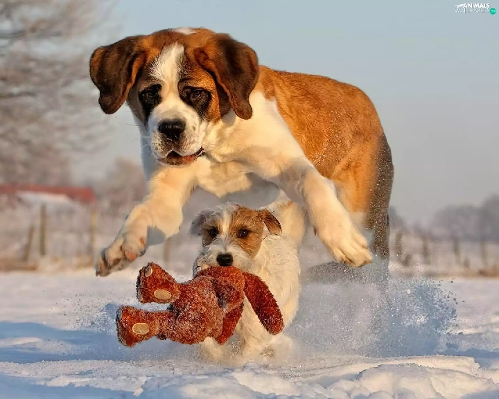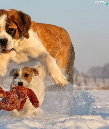 Dogs, snow, toy, Bernard