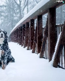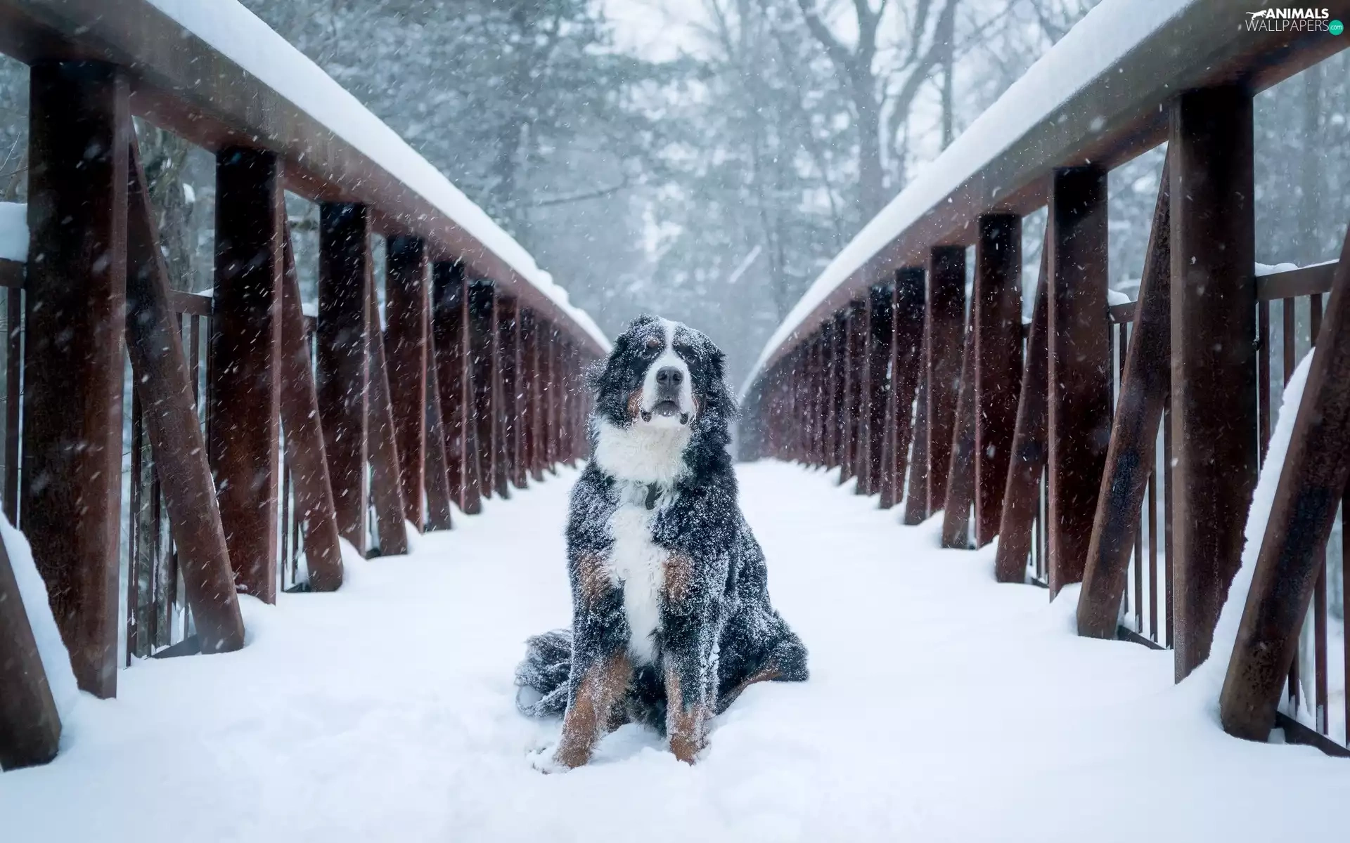 dog, bridge, snow, Bernese Mountain Dog