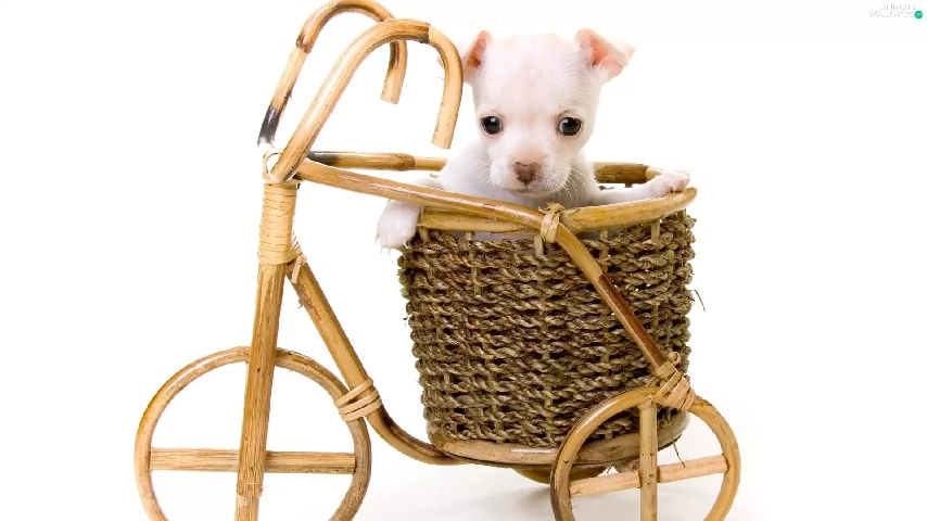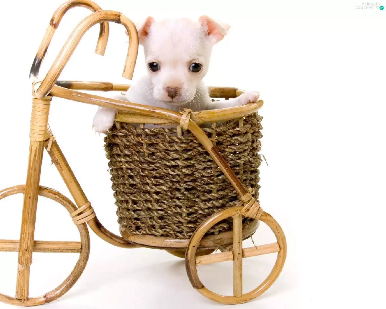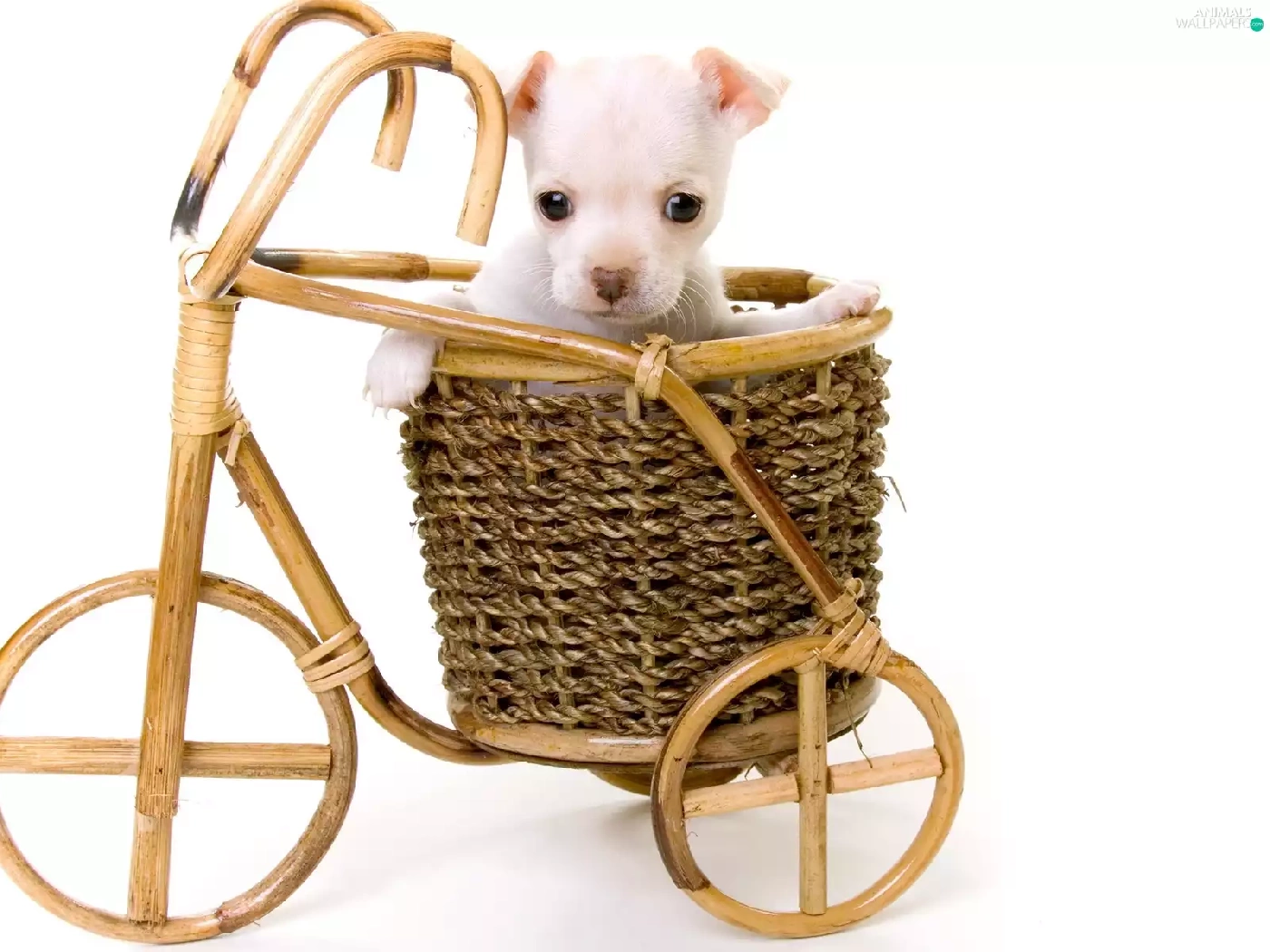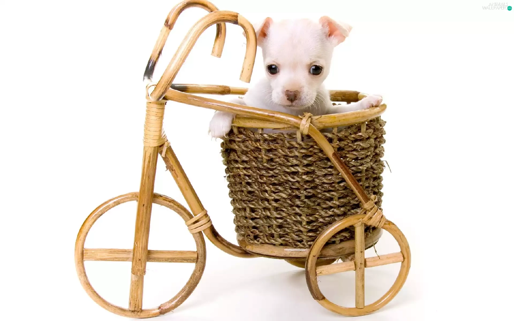 wooden, White, Puppy, Bicycle