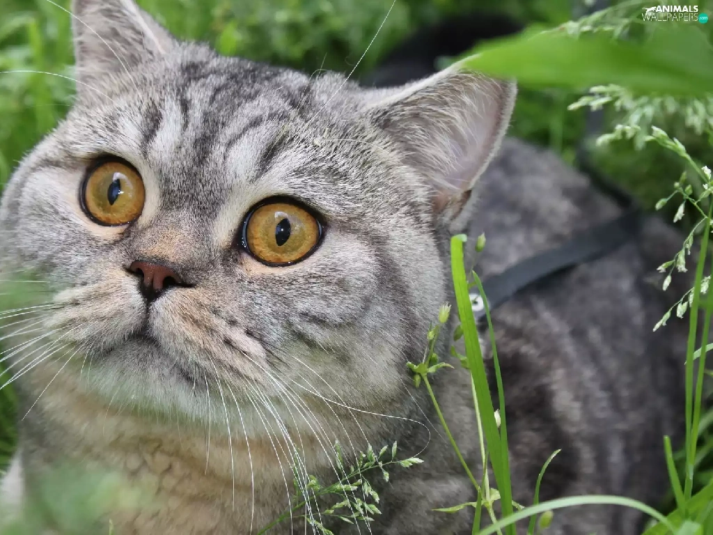 cat, Eyes, grass, Big