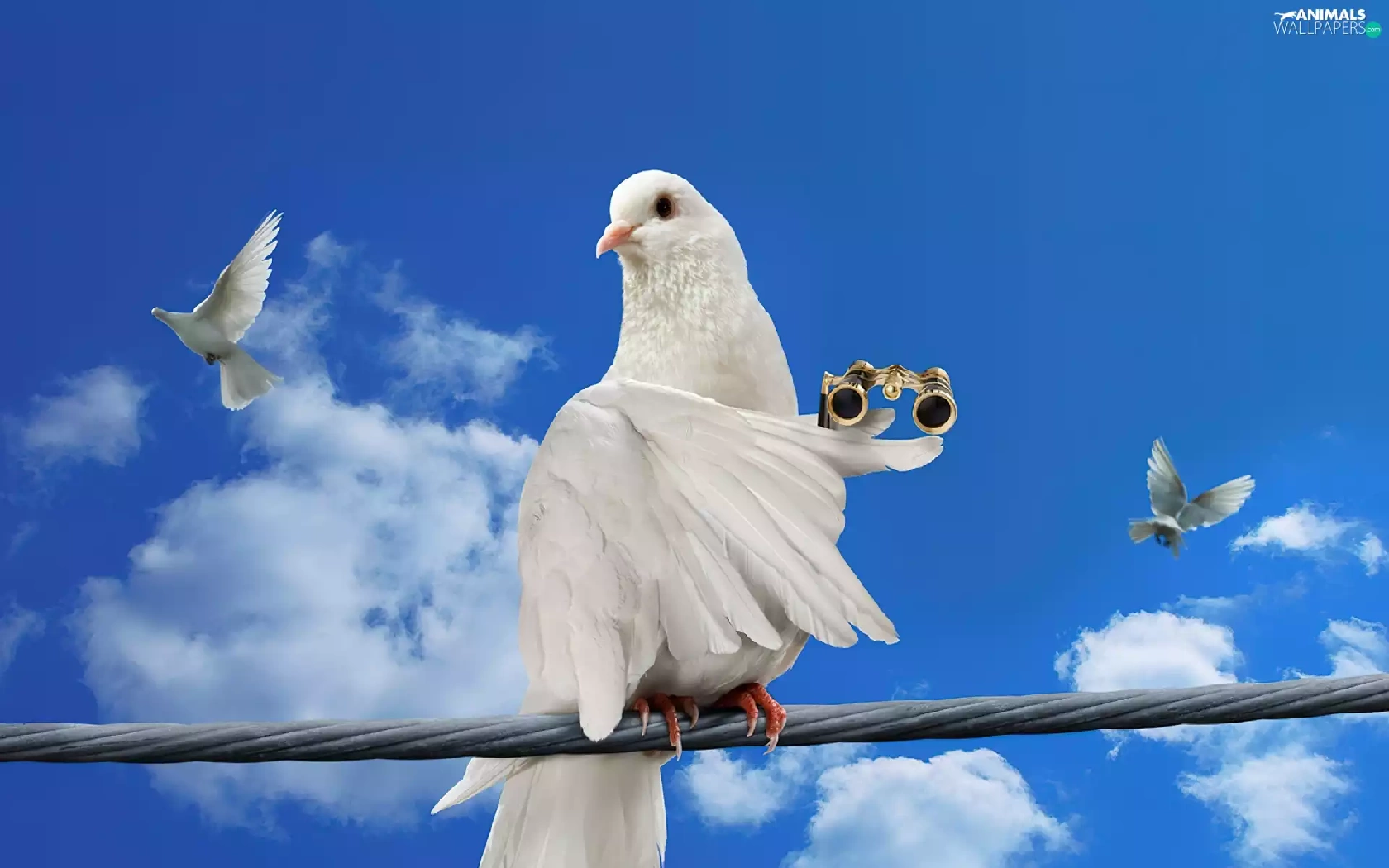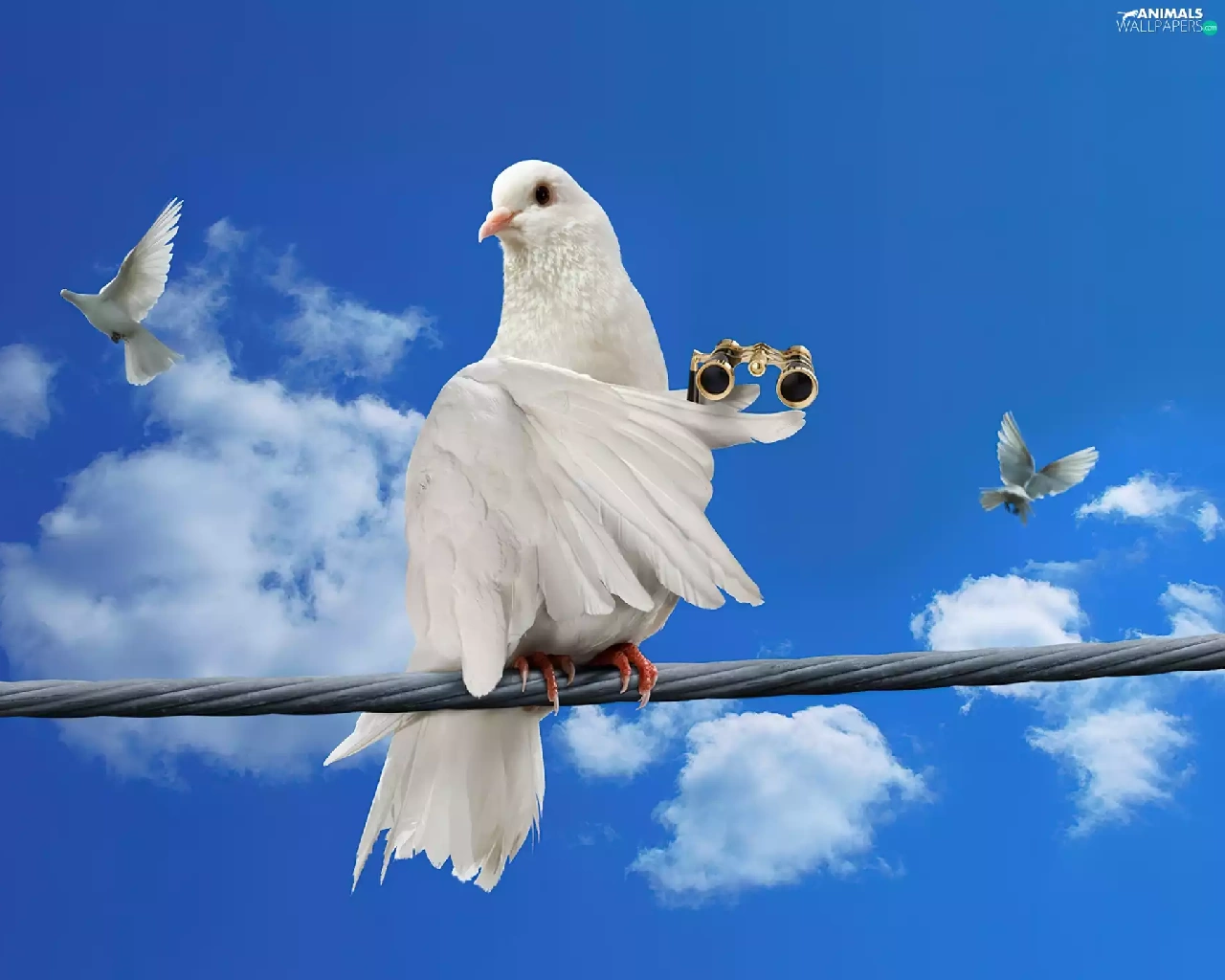binoculars, Sky, pigeon