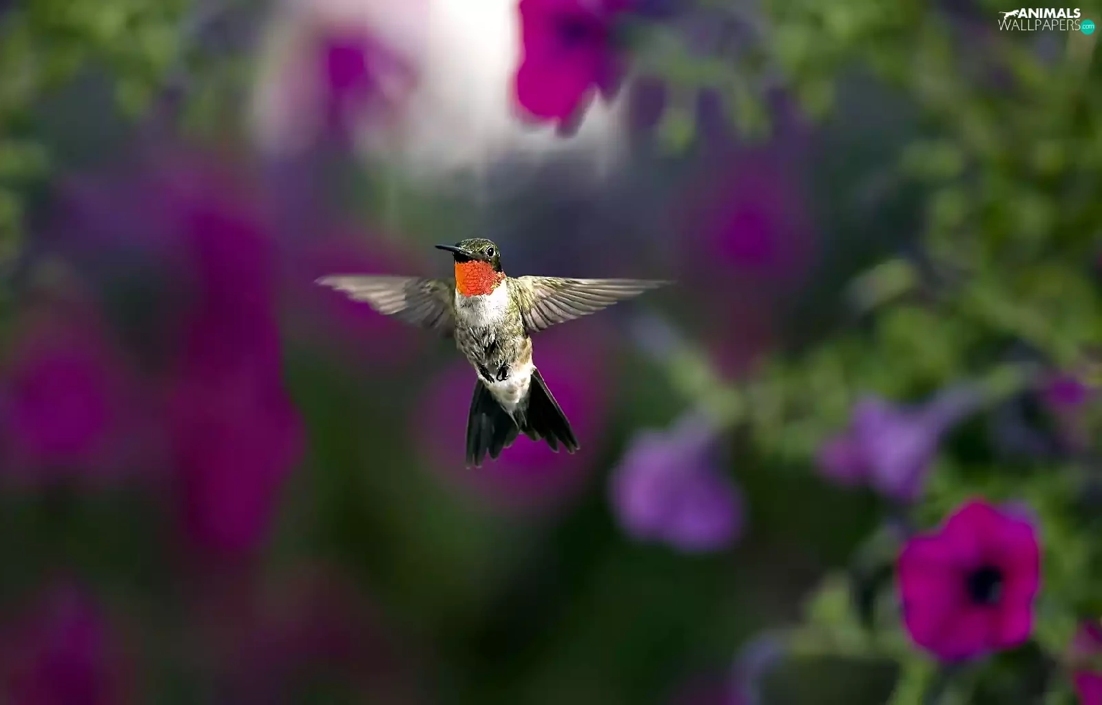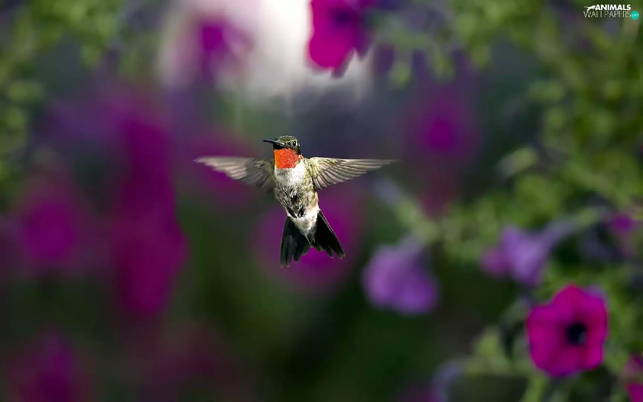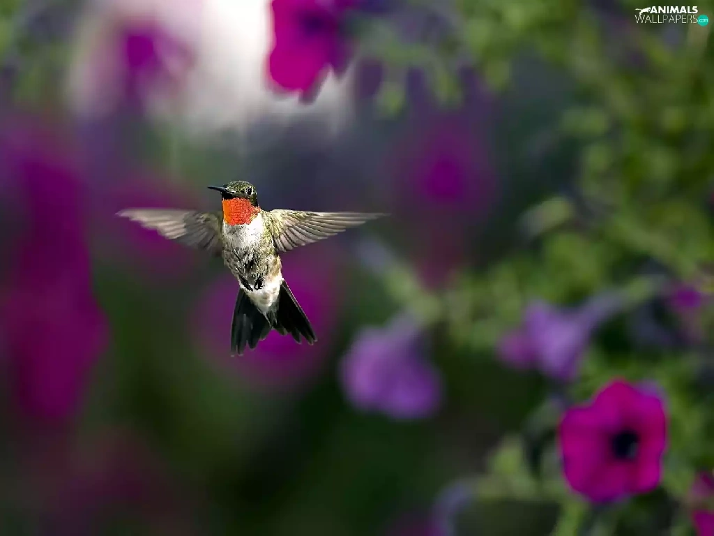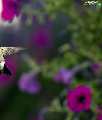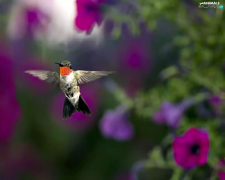 Flowers, Surfinie, humming-bird, purple, Bird