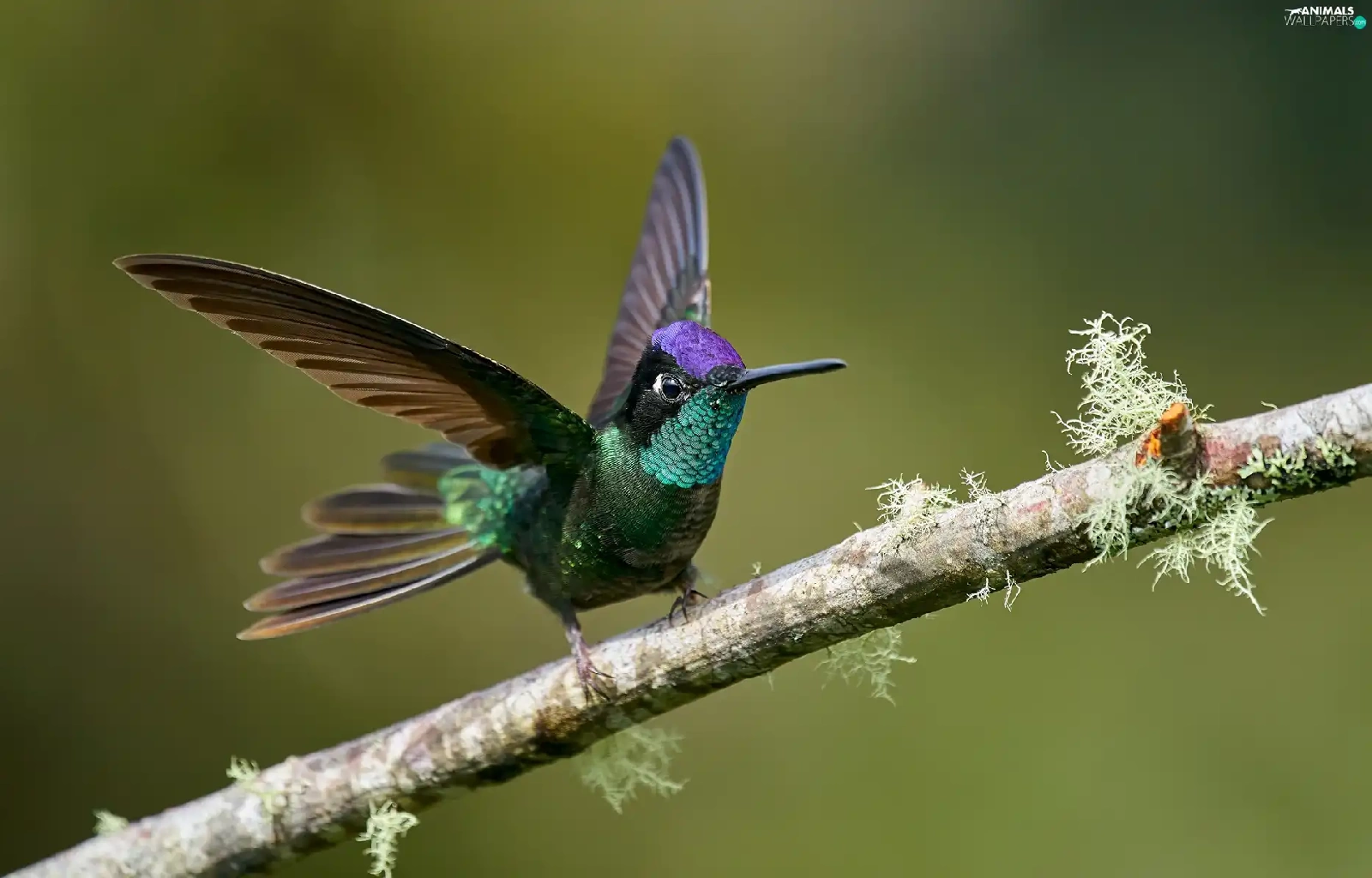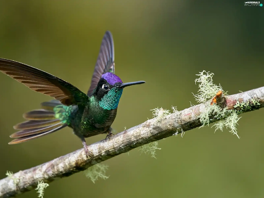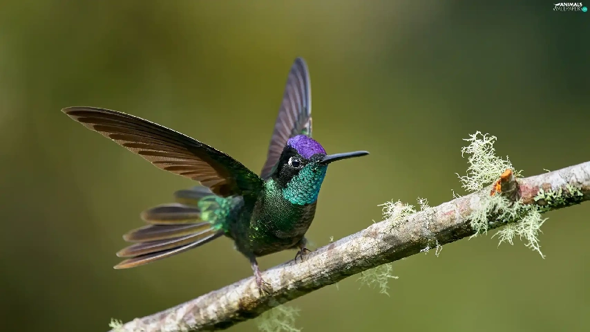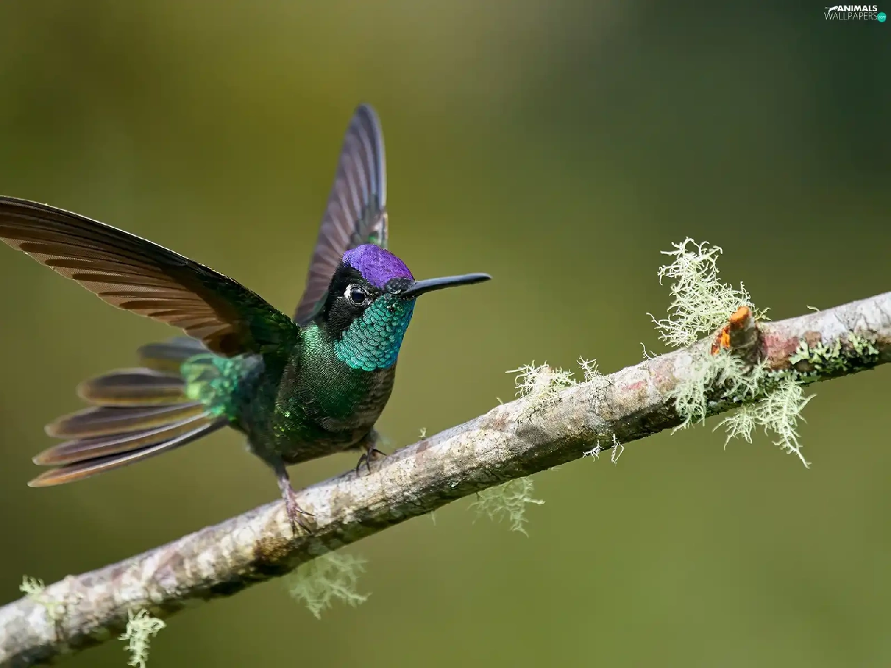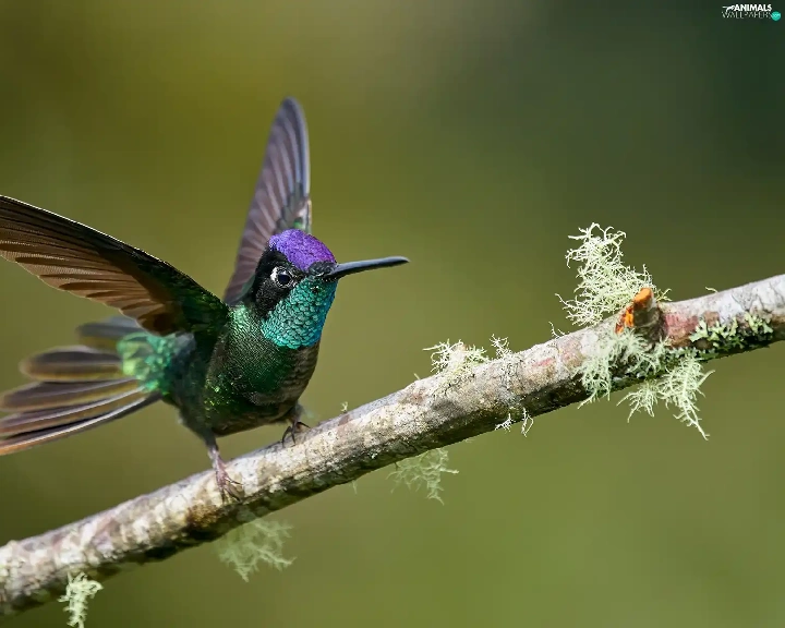 wings, branch, humming-bird, spread, Bird